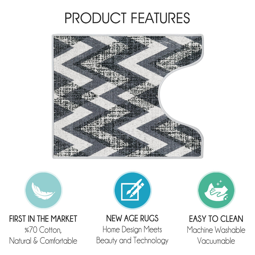 Chevron Design U Shape Bathroom Rug | 20”x24" | Gray