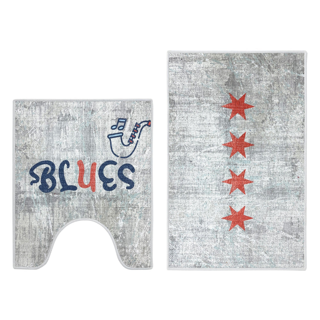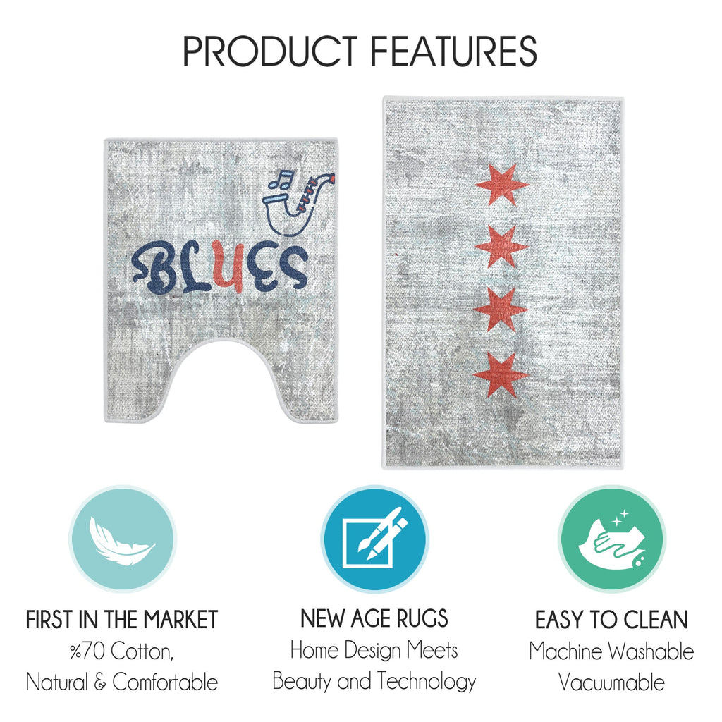Chicago Design 2 Piece Bathroom Rugs Set | Mutlicolor