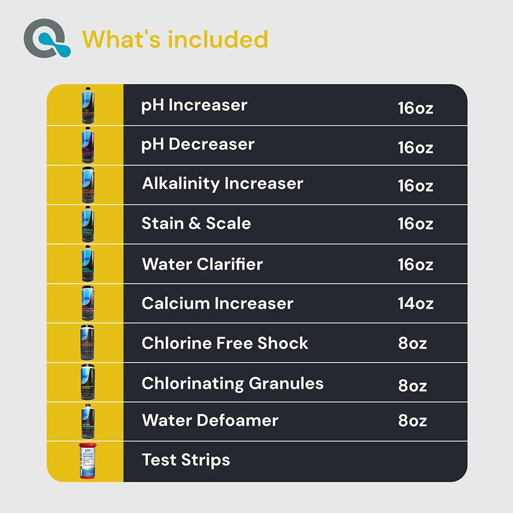 Our Chlorine Starter Kit is equipped with essential chemicals for spa and hot tub maintenance. Preventing cloudiness, scale buildup, corrosion, and component damage, it ensures a hassle-free, enjoyable spa experience from the start.