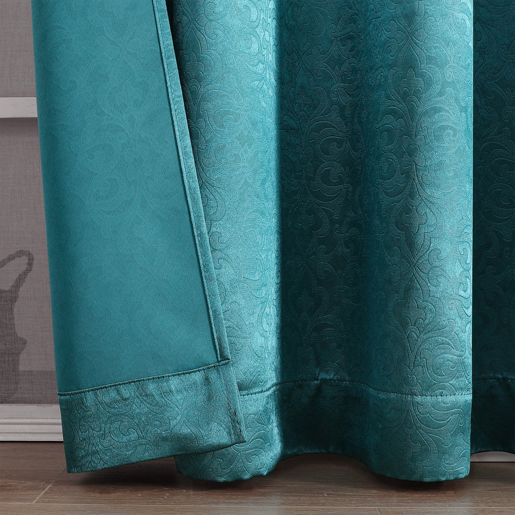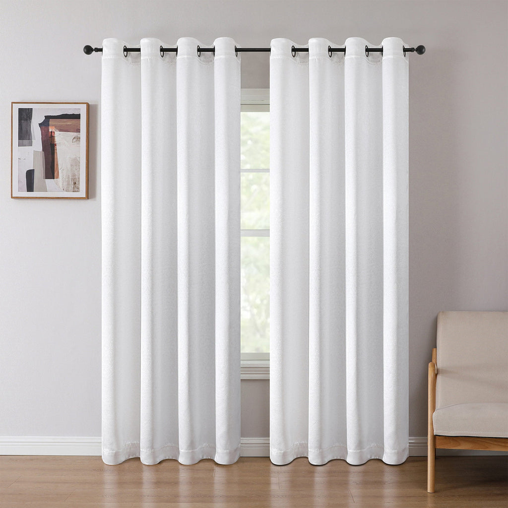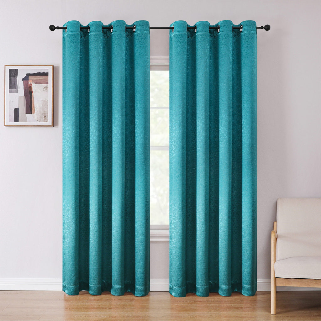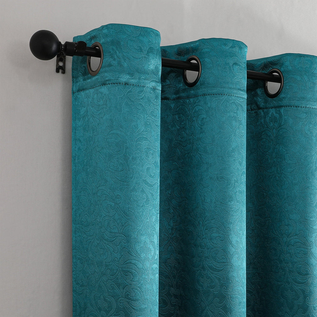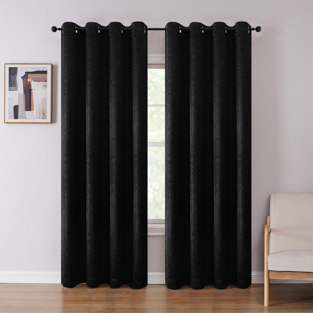 Spruce up your home decor with the Cordelia Embossed Damask Grommet Room Darkening Window Panel. This sophisticated curtain features a timeless damask pattern elevated by a subtle embossed texture, adding depth and dimension to your space. Designed to block out unwanted sunlight and noise, the room-darkening fabric creates a serene and inviting atmosphere, perfect for relaxation or restful sleep. The modern grommet top ensures effortless hanging and a polished look.