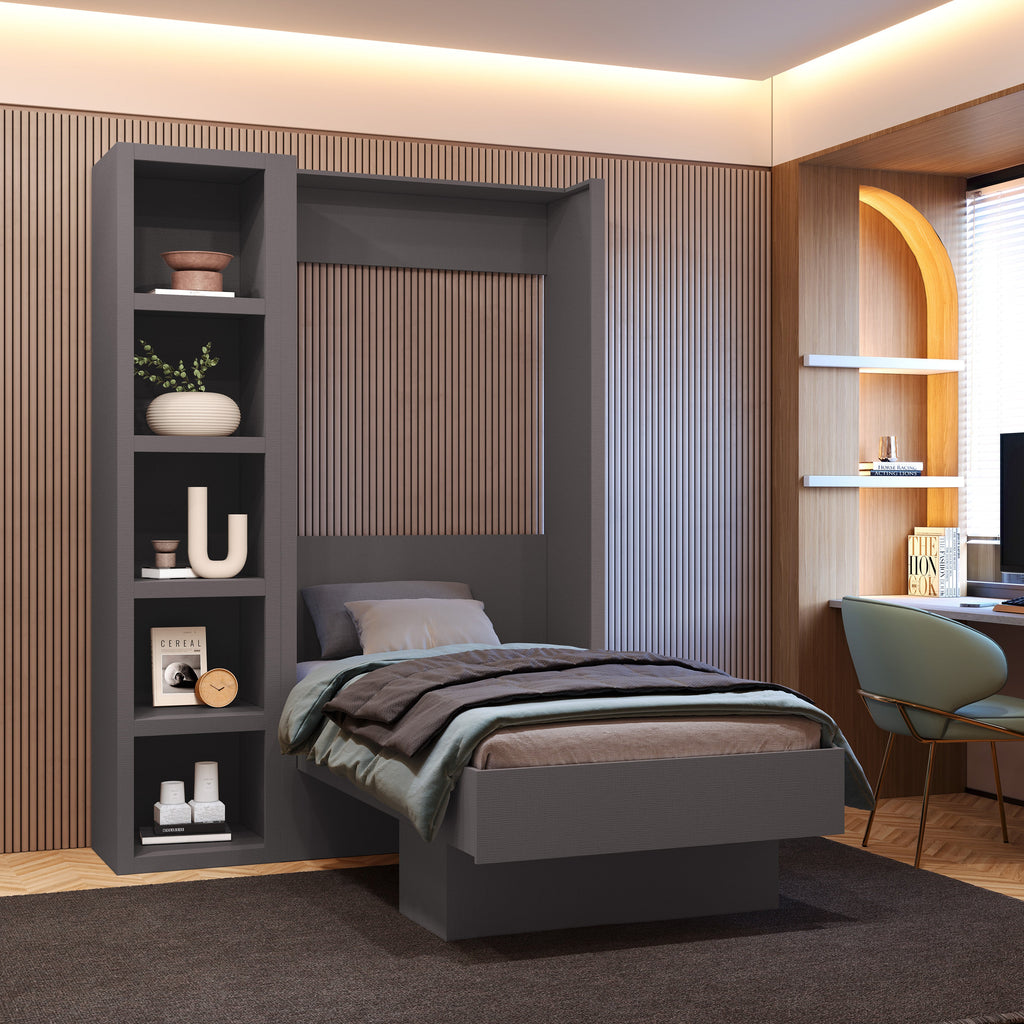 Dark Grey Twin Size Bookcase Shelf – The Perfect Storage Solution for Twin Murphy Beds