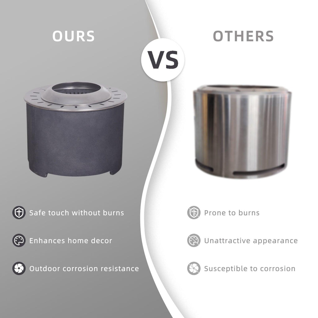 Dark Grey Faux Concrete Texture Smokeless Firepit with Wood Pellet/Twig/Wood as The Fuel for Garden & Outdoor