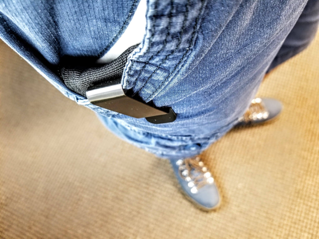 The “Deep Cover Clip Pouch” fits comfortably in front of, or behind your left or right hip. The pouch sits inside your pants waistband and the clip extends over your belt for truly covert carry of your ID and credit cards.