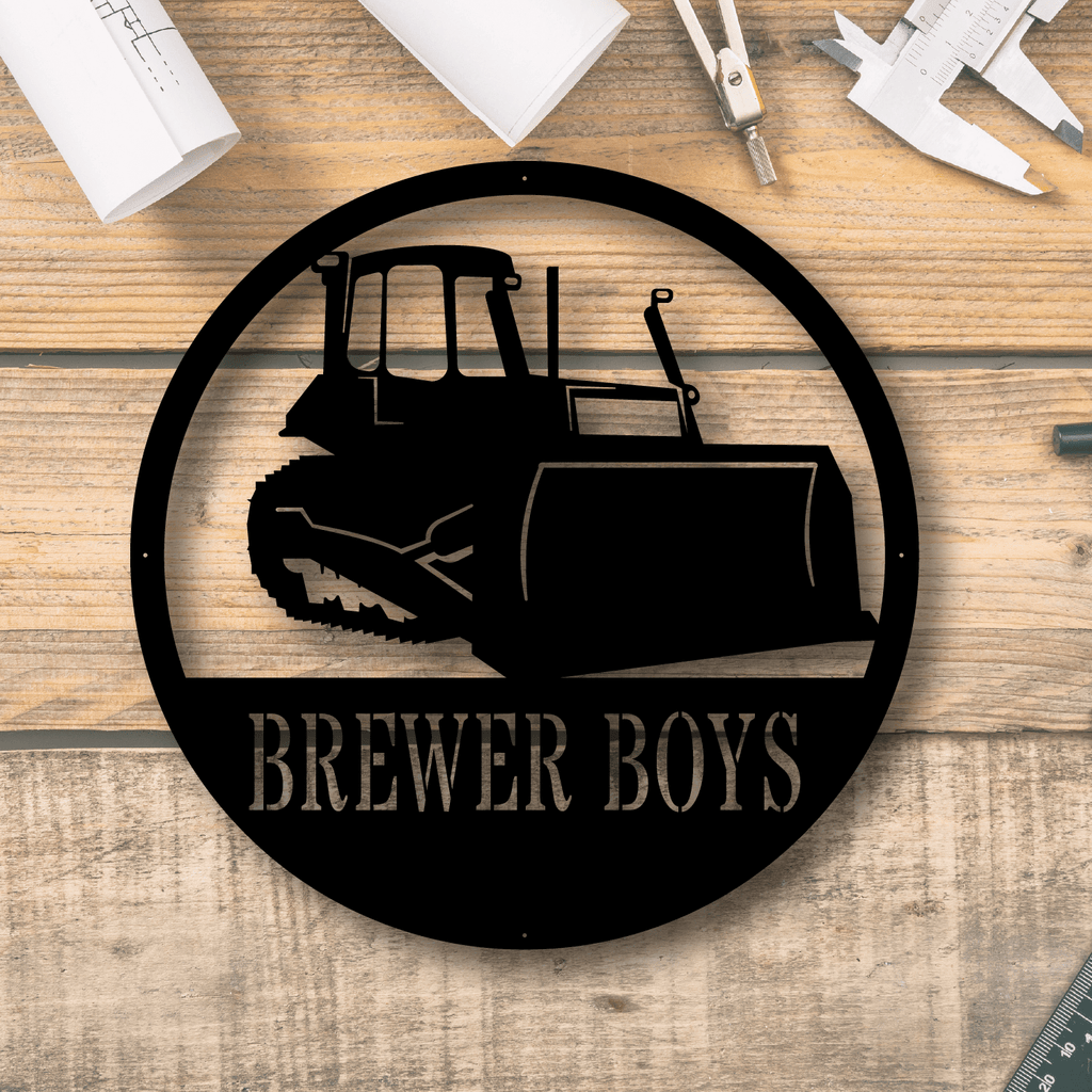 Elevate your outdoor space with the Dozer Monogram. This 16 gauge steel monogram features a sleek bulldozer silhouette and personalized text, making it a unique addtion to any home. Its durable powder coating ensures long-lasting beauty. Personalize yours today and show off your love for heavy equipment.