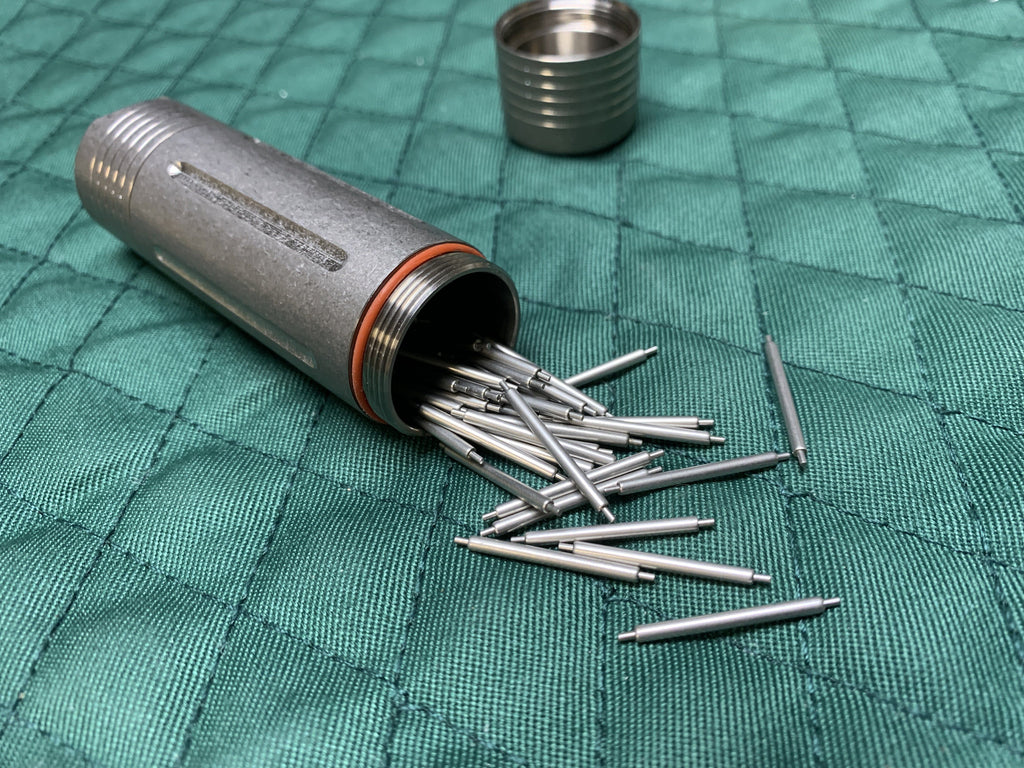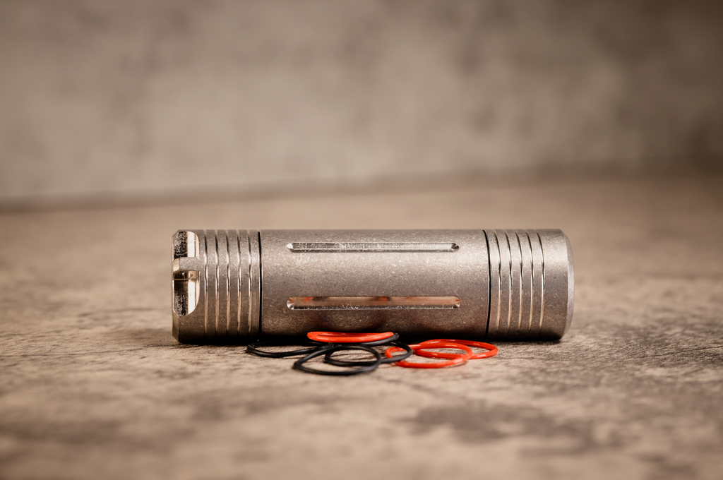 Crafted from rugged Titanium 6AL-4V with a stylish Stonewash Finish, this cache boasts exceptional durability and resilience. Its compact dimensions of 94 mm (3.68") in length, 26 mm (1.07") in external diameter, and an internal opening of 22 mm (.873") make it highly portable and discreet.