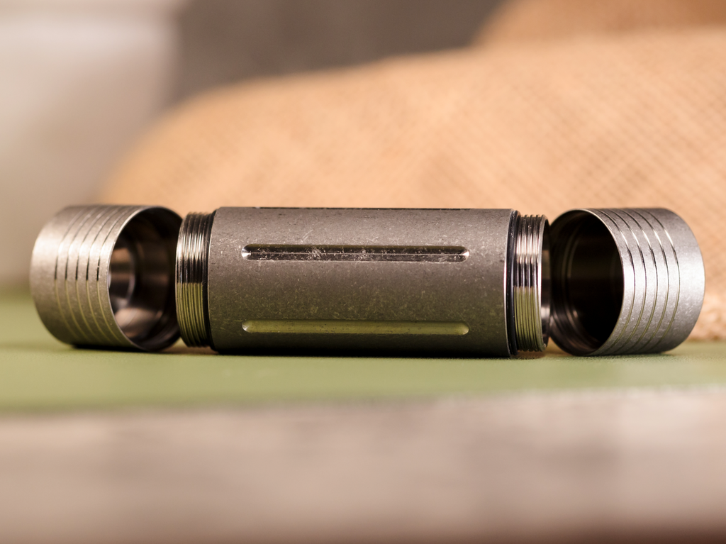Note : The Dual Pass Through Titanium Cache is not intended to be used to store any type of batteries as its a sealed metal container and the batteries will short out.