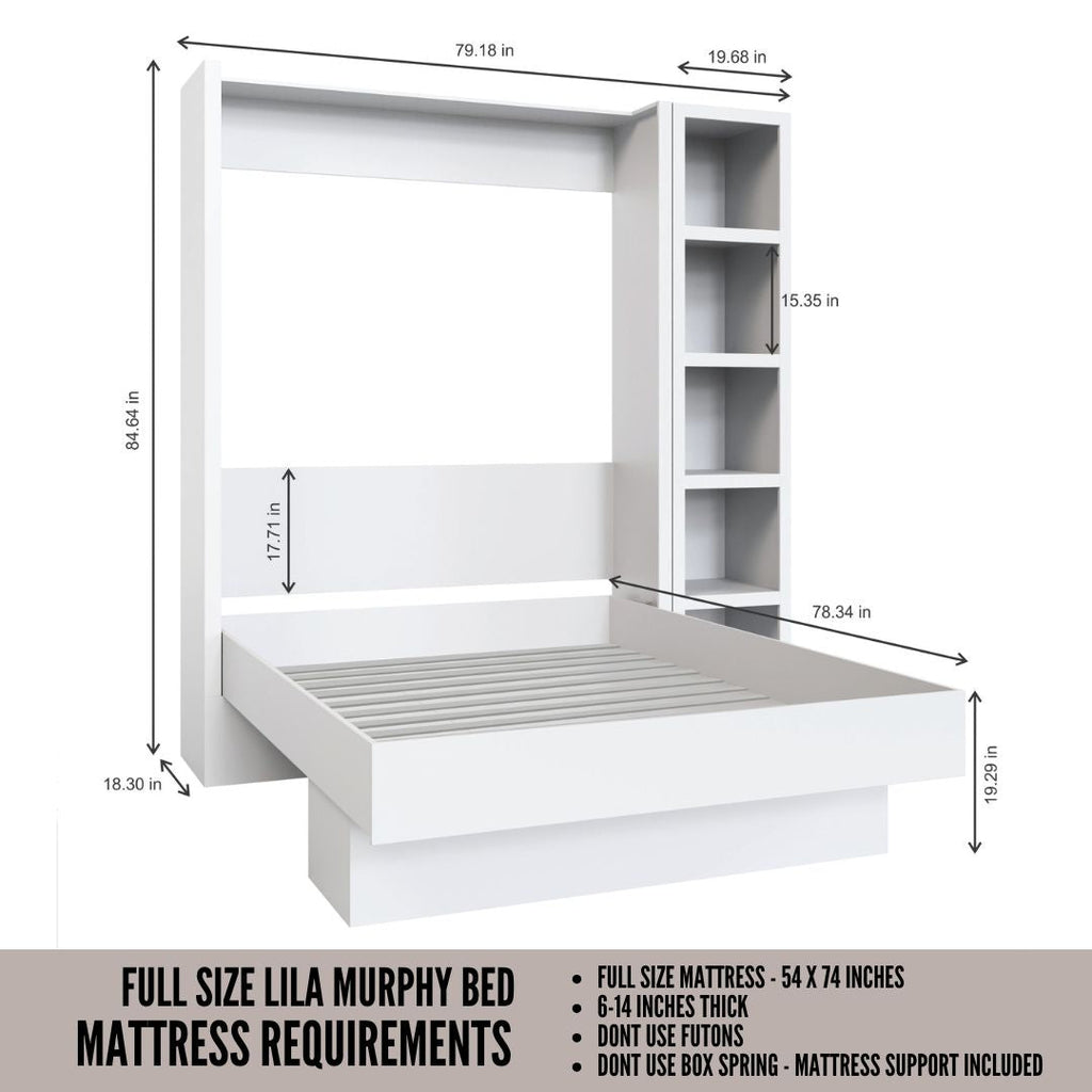 Easy Lift Dark Grey Full Murphy Bed with Bookshelf and Display Shelf β Transform Any Room into a Multipurpose Space