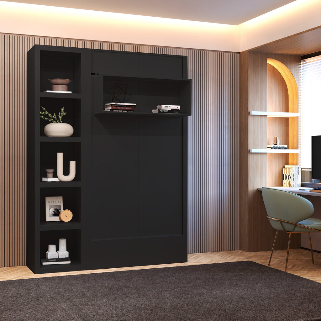 Easy Lift Black Twin Murphy Bed with Display Shelf and Bookshelf β The Perfect Space-Saving Solution for Any Room