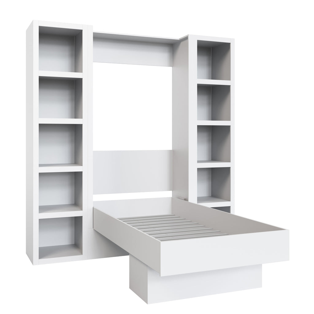 Easy Lift White Twin Murphy Bed with Two Bookshelves – Maximize Your Space with Style and Functionality