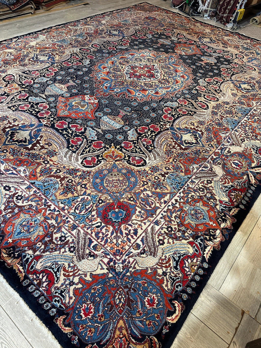 Own a piece of history with this 50-year-old, hand-knotted Kashmar Persian Rug. Its intricate design and fine museum grade construction make it a timeless work of art that's sure to be the centerpiece of your home. Bring luxury and warmth into any room with this one of a kind antique!