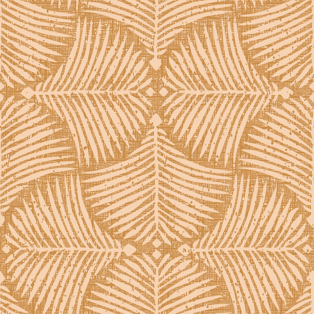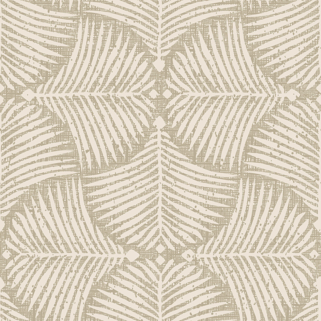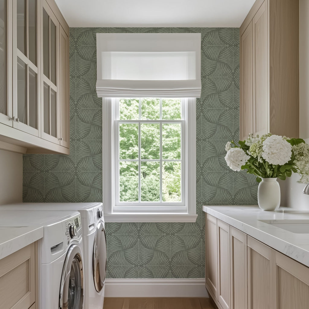 This design draws its strength from contrast - where structured, hand-drawn palm leaf motifs meet a textured, linen-like backdrop in muted sage and olive tones. The result is a modern tropical wallpaper that feels organic, serene, and surprisingly versatile. It’s bold in texture but soft in spirit.