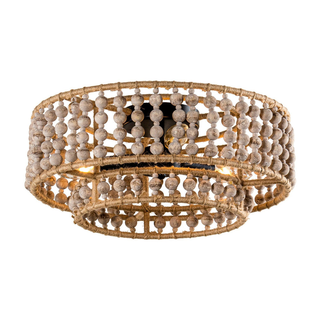 Go Boho in a casual or semi-formal space with this 3-Light wood beaded flush mount ceiling Lights. This contemporary ceiling light features a black iron metal light base with vertical strands of natural wooden beads and rope accents. It perfectly combines classic and modern styles. Provide perfect decoration or lighting for an entryway, kitchen, dining room, living room, entrance, corridor, nursery room, children's room, hotel, dining room, etc. This wood-beaded ceiling light fixture is easy to install, our chandelier set includes all mounting hardware and instructions for quick installation. Just connect screw the bulbs into the socket, link the wires, and install the farmhouse light fixture onto the ceiling.