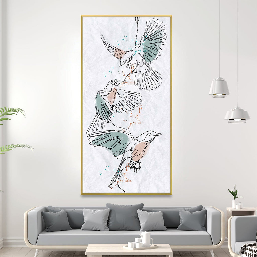 Elevate your space with "Feathers in Unison," a captivating line art minimalist design featuring three birds in graceful harmony. The subtle strokes and texture, coupled with a palette of green, cream, and white, create a tranquil and sophisticated ambiance. Transform your decor with this minimalist masterpiece, available as wall art, canvas wall art, and framed wall art. Immerse your surroundings in the understated elegance of avian beauty, adding a touch of nature-inspired refinement to your home or office.
