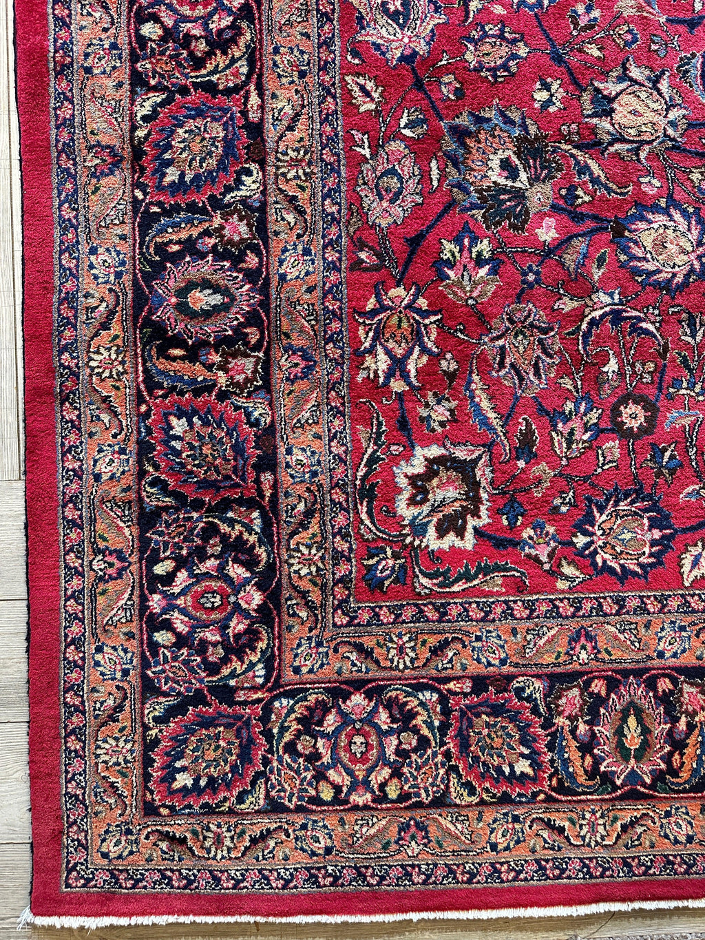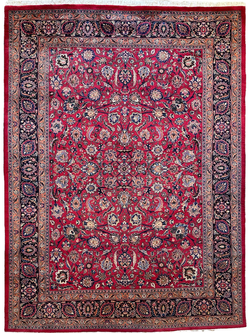 This beautiful Persian Mashhad rug features intricate hand-knotted construction, making it a vintage piece of art. Made from wool with cotton warp, it showcases a stunning Mashhad design. Mashhad is one of the biggest cities of Iran and Persia. Mashhad carpets are known to be robust and enduring. Mostly they come in extraordinary large scales. A large genuine Persian carpet like this one requires a lot of skill and experience. Generally, it takes several months to craft such a carpet by hand in traditional handicraft. With its large size of 8'x11'6", this pre-loved rug is in great condition and adds a touch of luxury to any space. Hand-made in Iran, it exudes passion and craftsmanship.