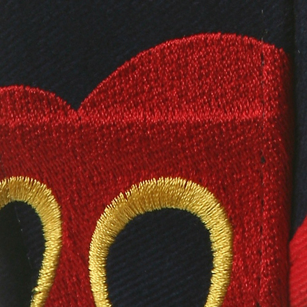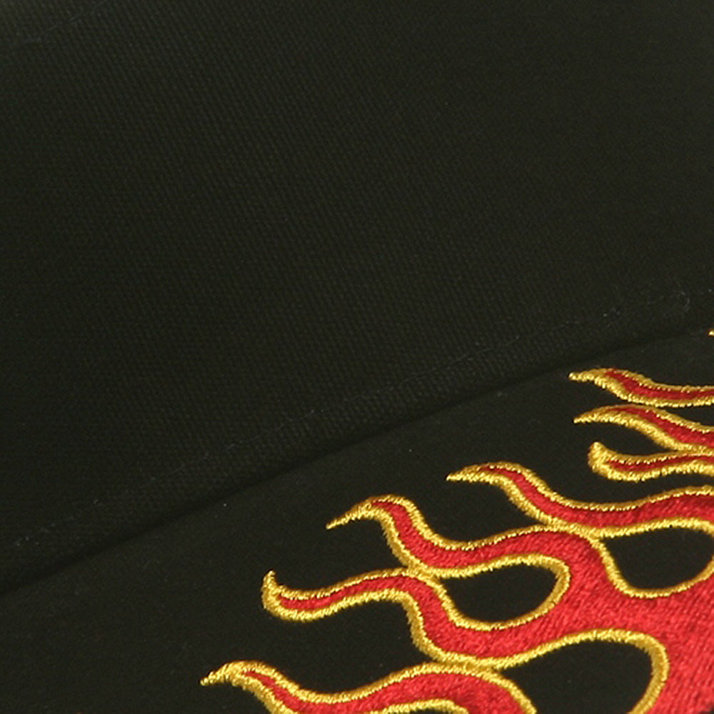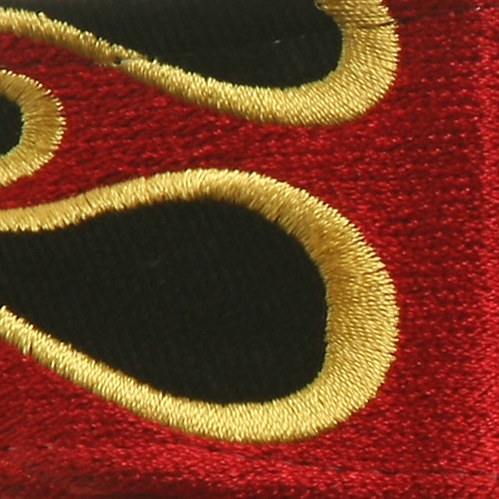 Feature, Embroidered Pattern Red Flames Outlined in Silver Grey