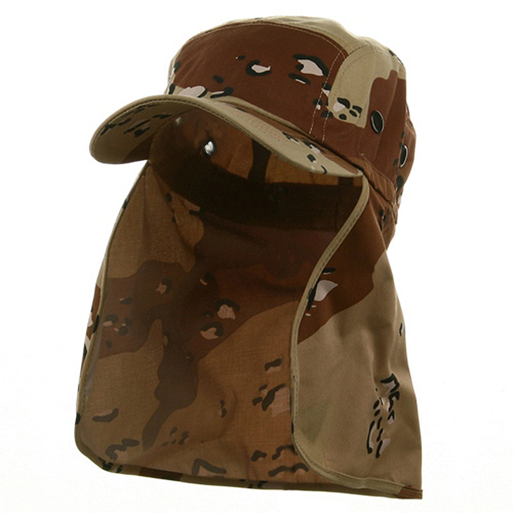 Design Features, The crown features 5 Panels, with an attached 7 1/2" long fabric flap.