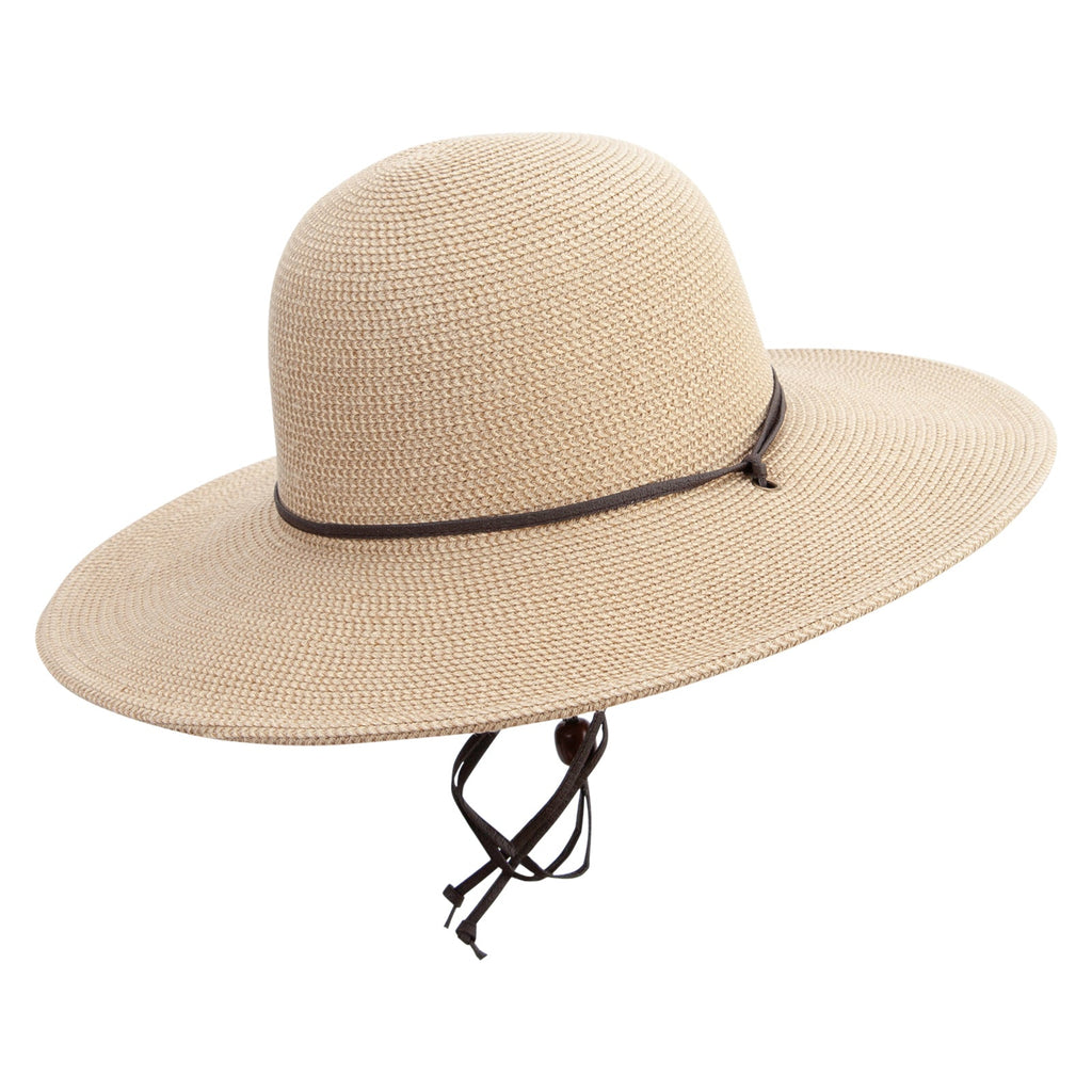 Design Features, Crown measures 4 inches deep with a 4 inches wide brim, complemented by a leather chin string.