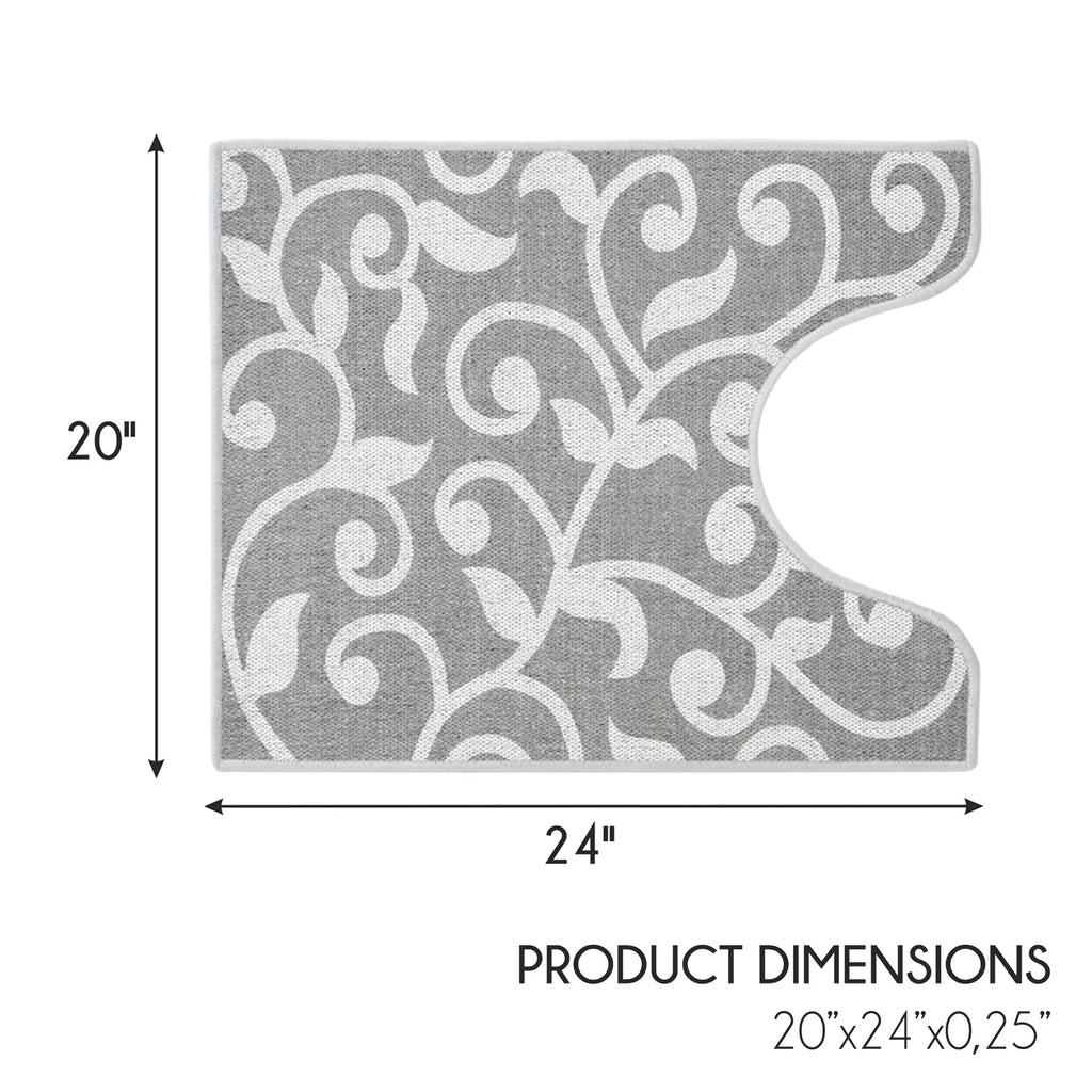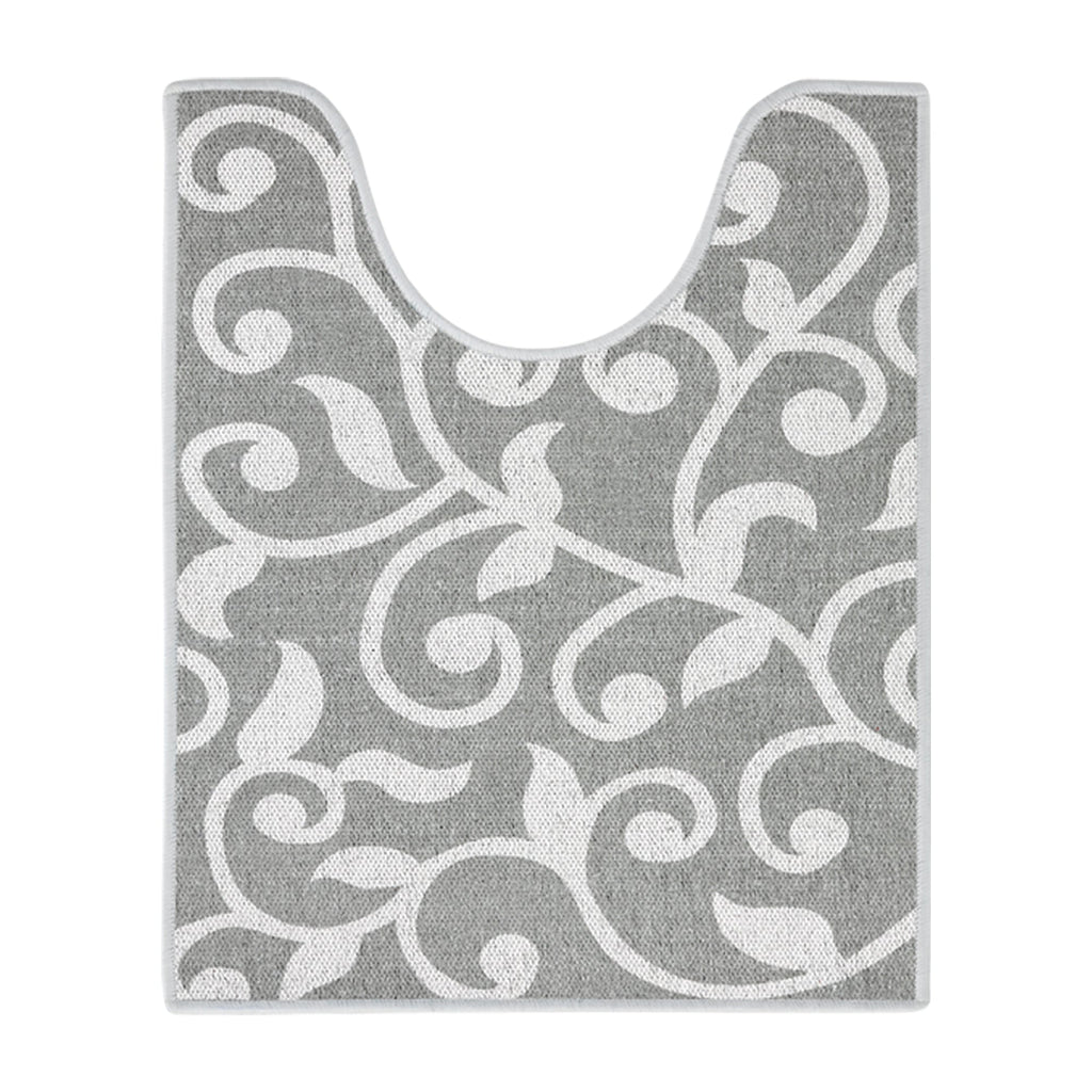 Floral Design U Shape Bathroom Rug | 20”x24" | Gray