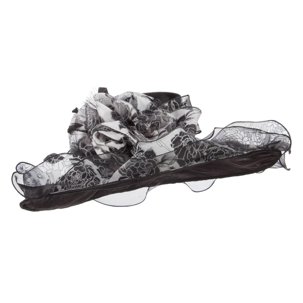 Floral Ruffle Brim Organza Hat