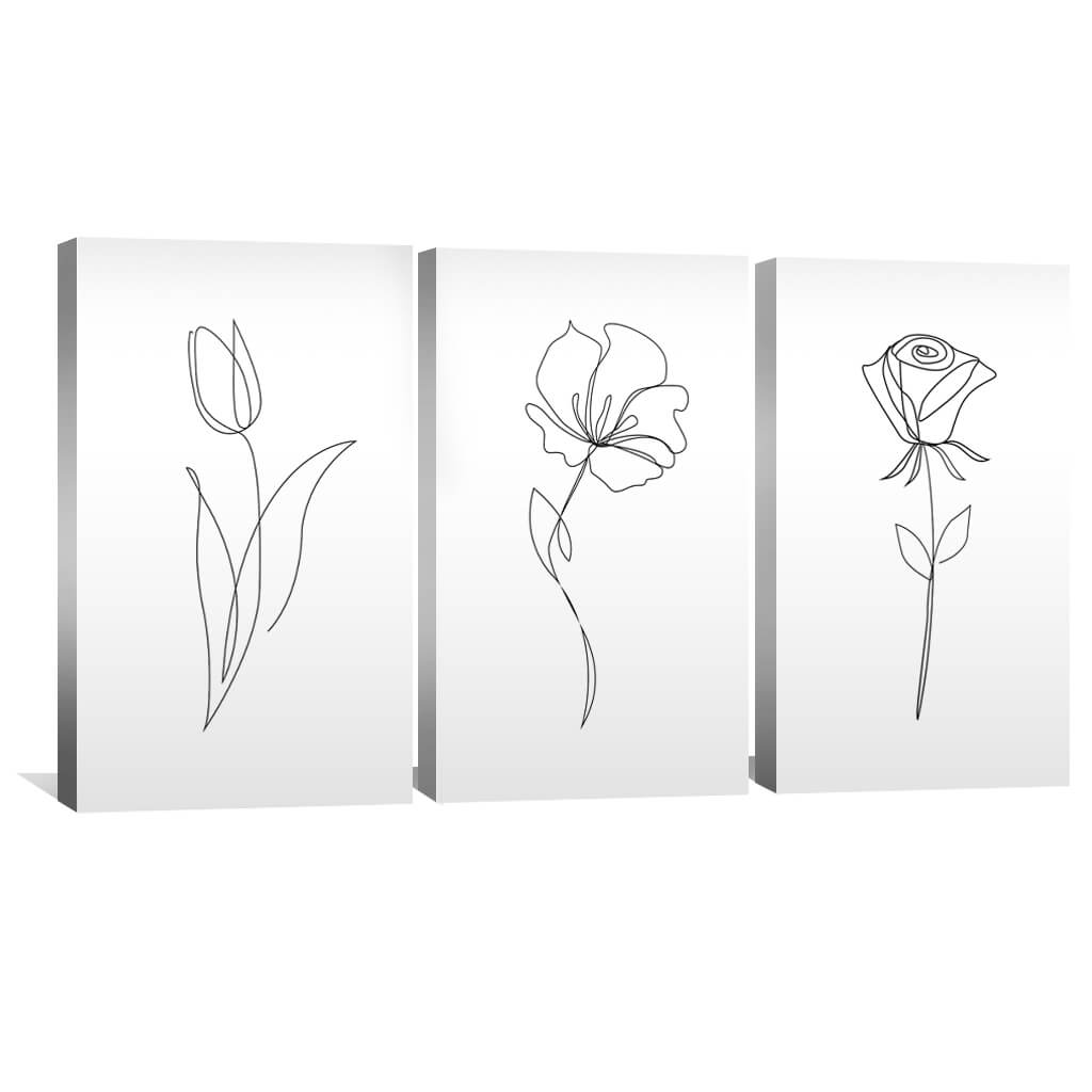 Give any open wall in your home a tasteful touch of glamour with this painting print. This canvas showcases line art of beautiful flowers.