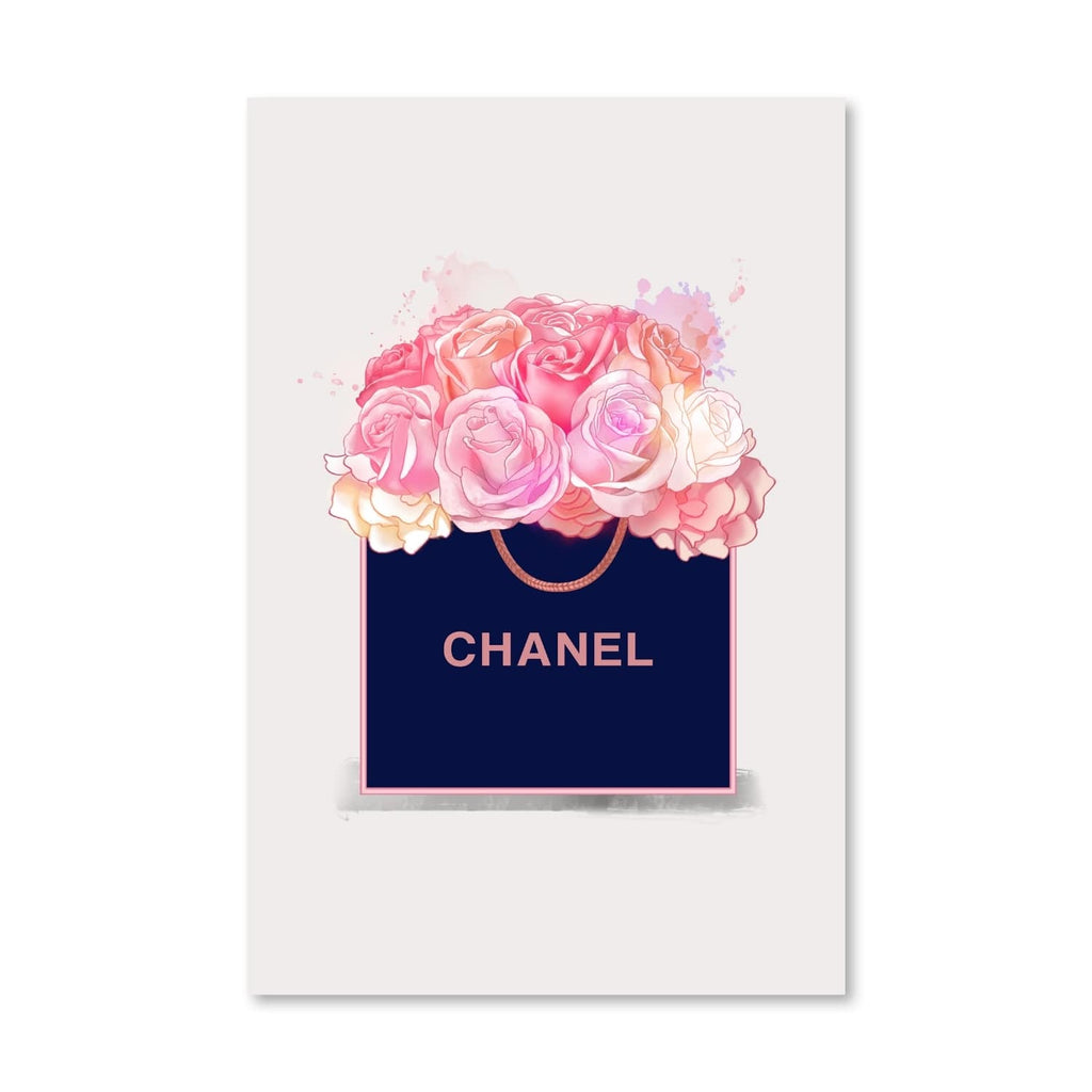 Give any open wall in your home a tasteful touch of glamour with this beautiful print. This canvas showcases pink flowers in a channel shopping bag.