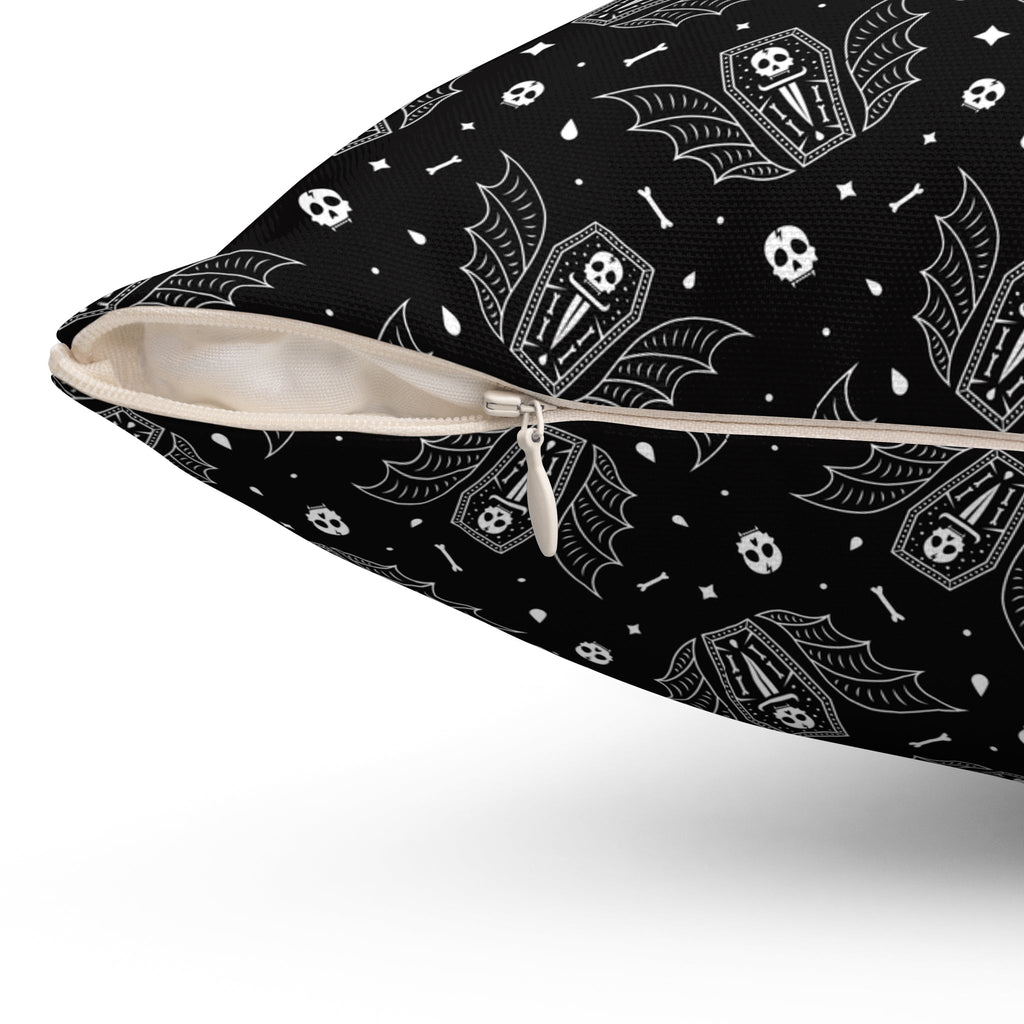 Perfect for any room, the Flying Coffin Pillow offers comfort and a touch of gothic whimsy. Embrace the playful side of the dark and add a unique piece to your home decor collection.