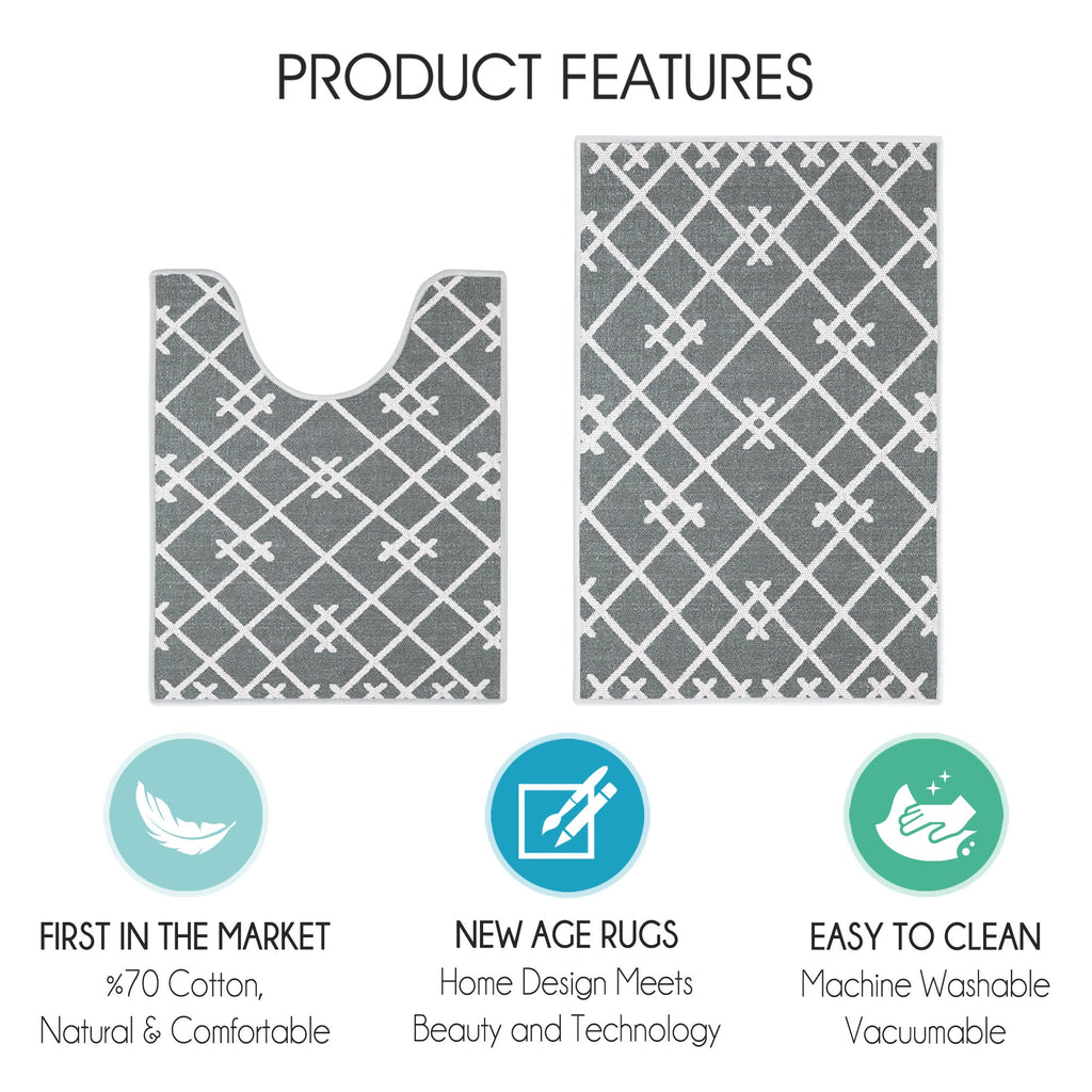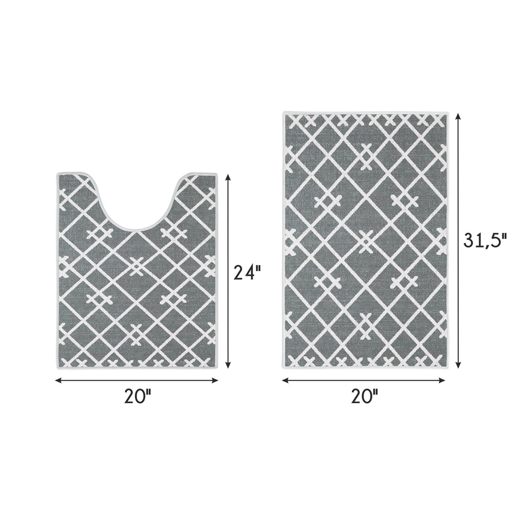 Geometric Design 2 Piece Bathroom Rugs Set | Gray