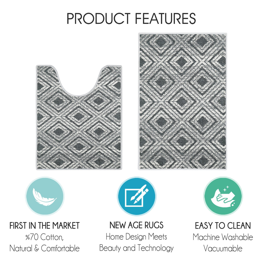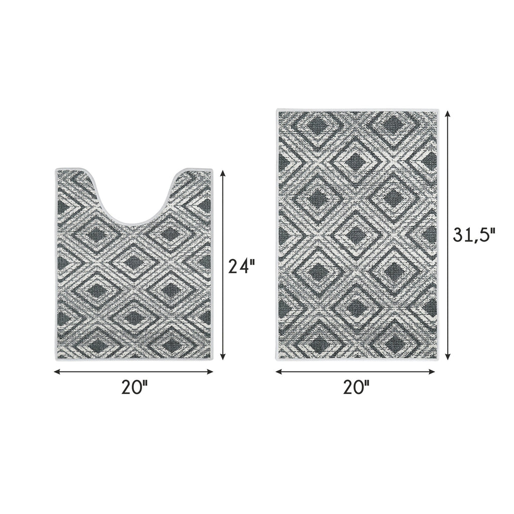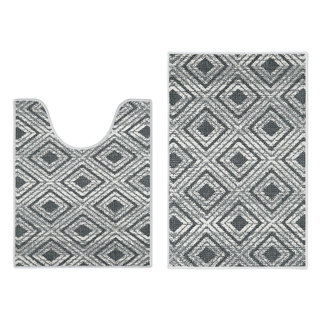 Geometric Design 2 Piece Bathroom Rugs Set | Gray2