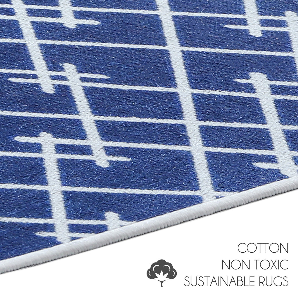 Lightweight, soft, and durable 70% cotton and 30% polyester material with non-skid backing prevents slipping on all floor types. With under 1/4" in thickness, our set will not get trapped under the doors, creating a hazardless environment that is safe for children, the elderly, and pets.