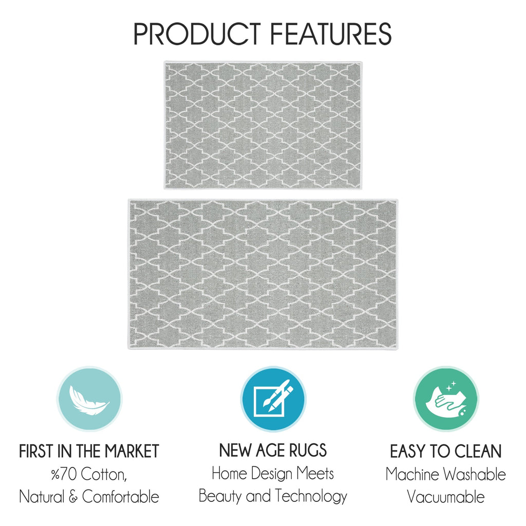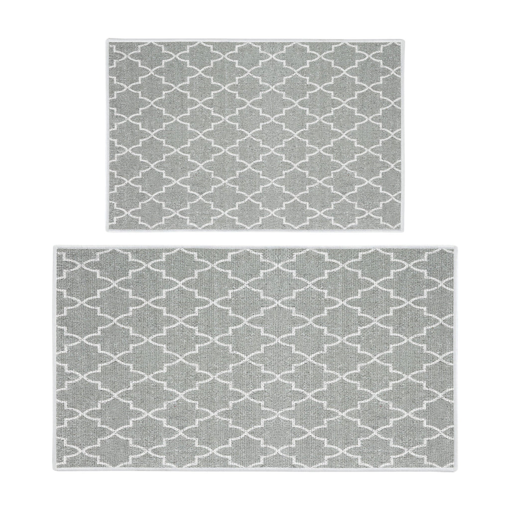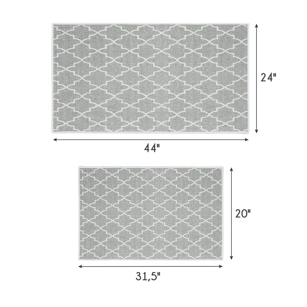 Geometric Design Non Skid Washable Kitchen Runner Rugs Set of 2| 44 x 24 and 31.5 x 20 Inches Floor Mats |Gray