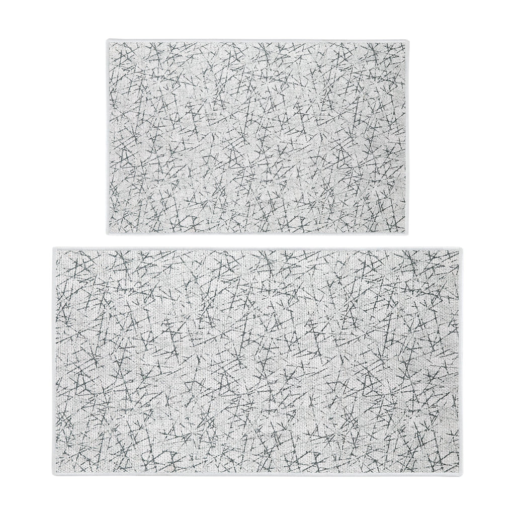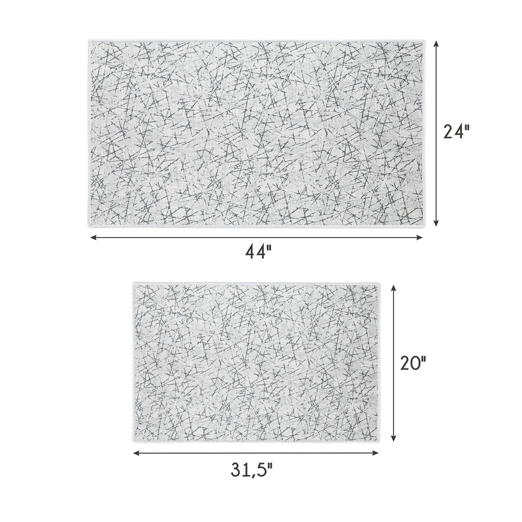 Geometric Design Non Skid Washable Kitchen Runner Rugs Set of 2| 44 x 24 and 31.5 x 20 Inches Floor Mats |White