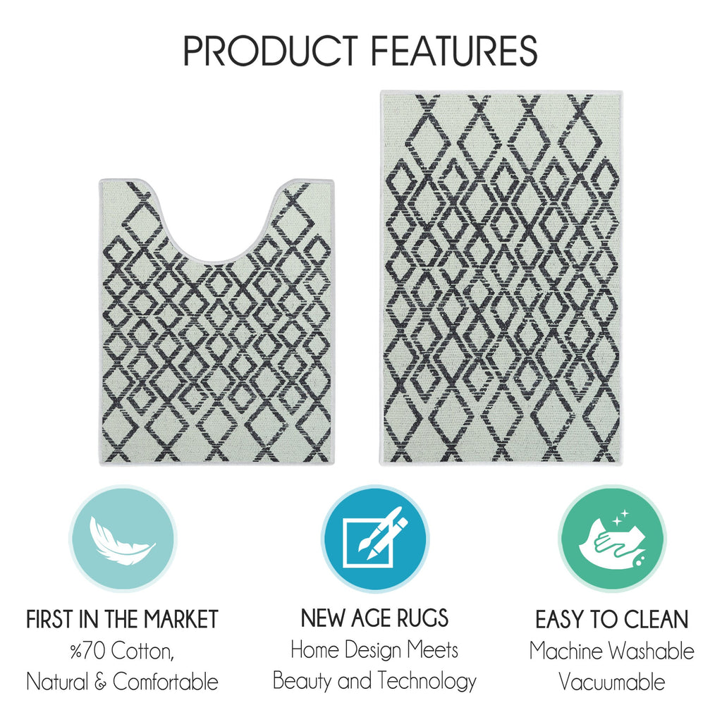Geometric Diamond Design 2 Piece Bathroom Rugs Set | Ivory