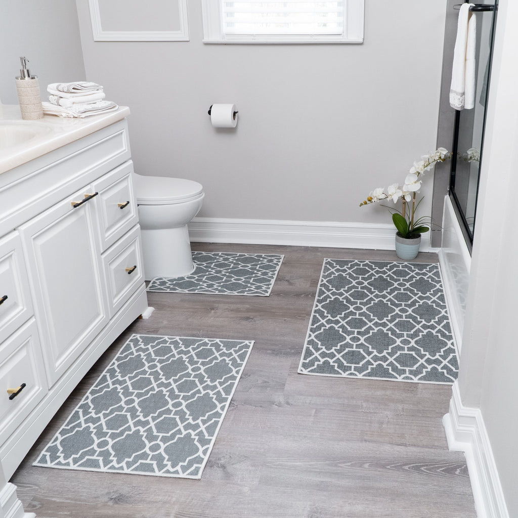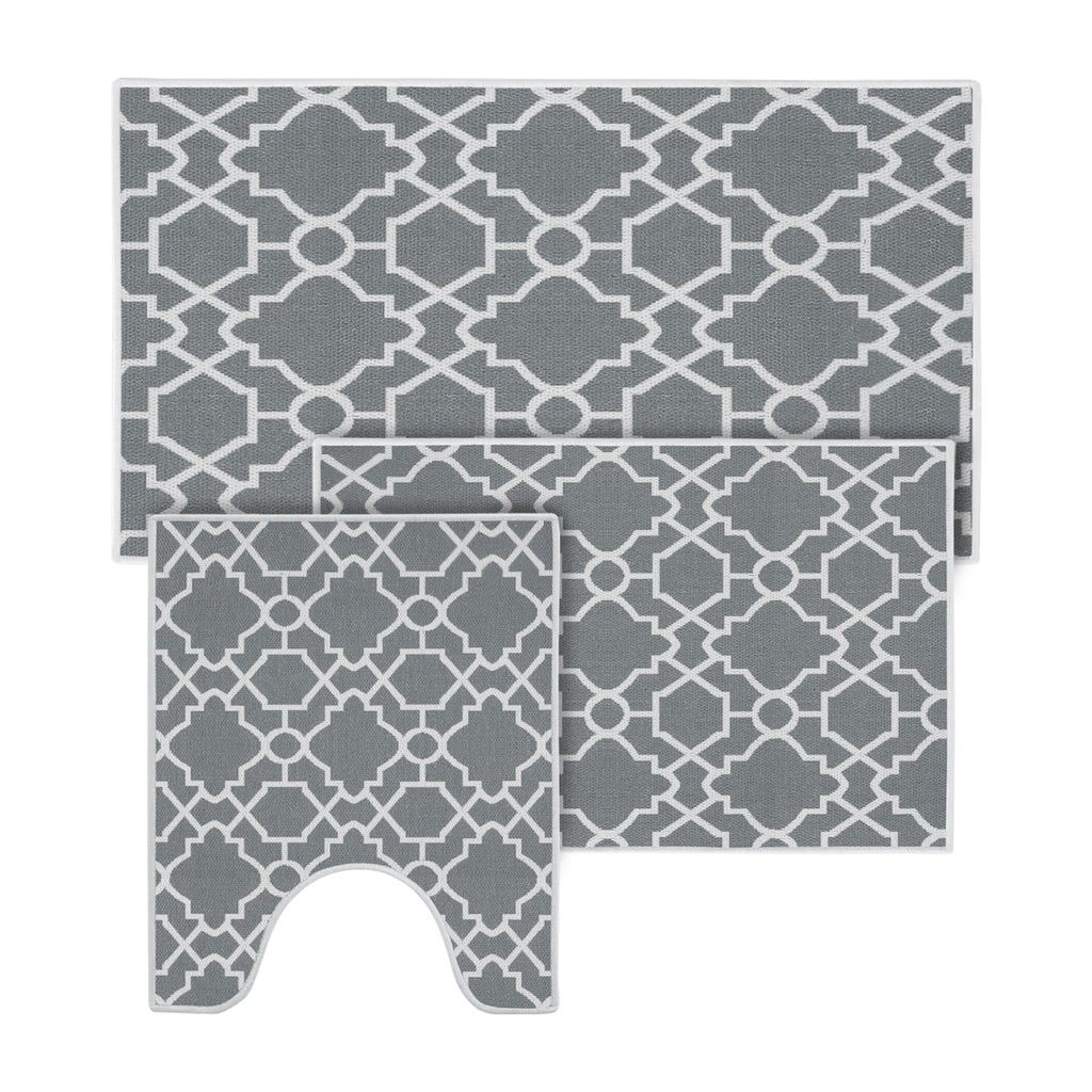 Geometric Graphic Design 3 Piece Bathroom Rugs Set| Gray