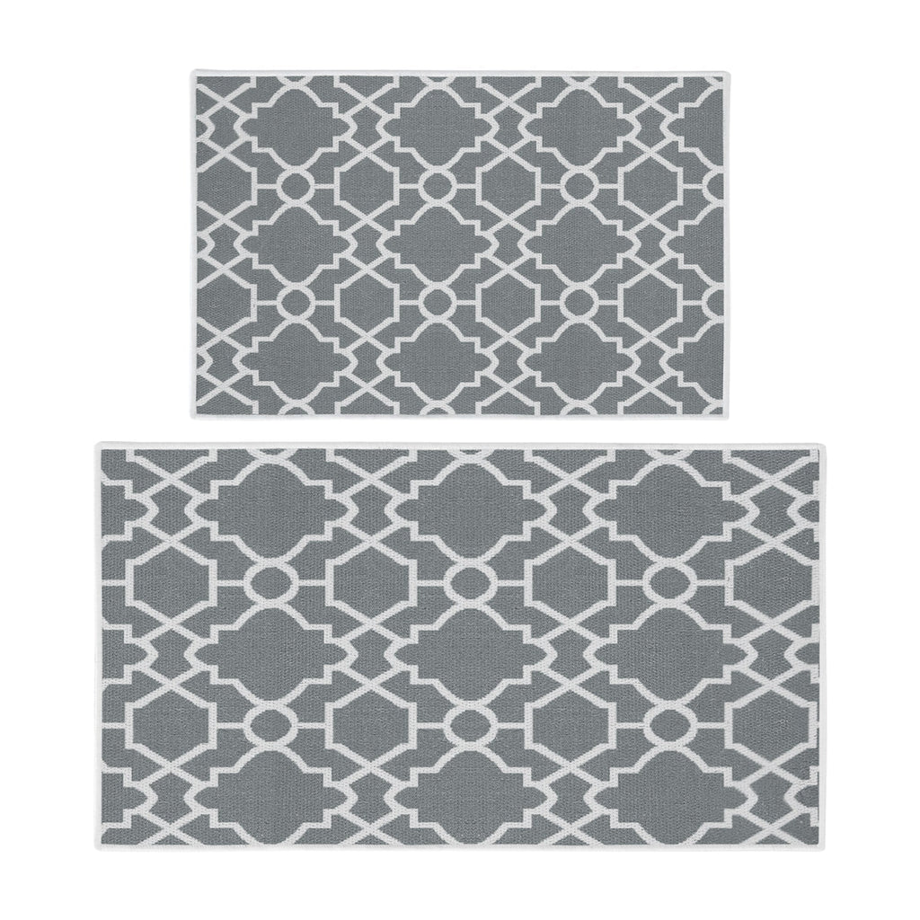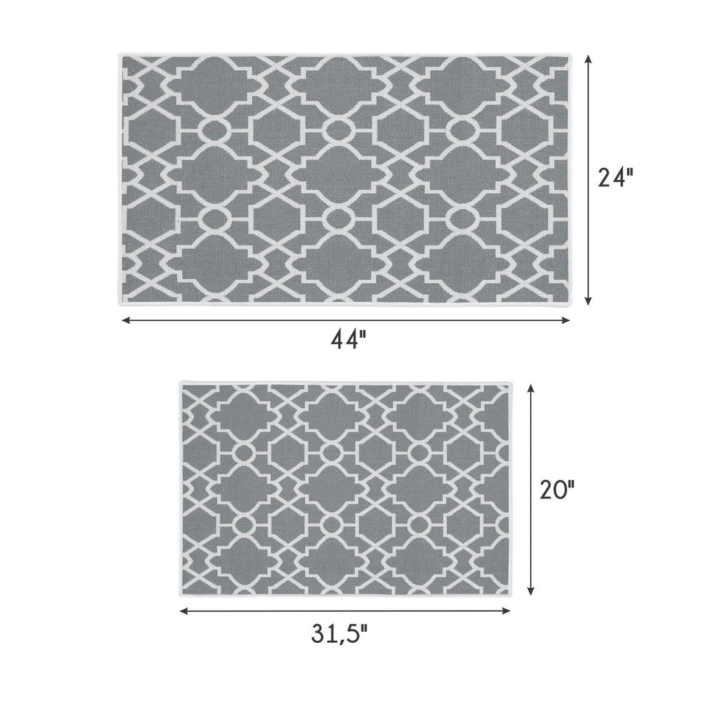 Geometric Graphic Design Non Skid Washable Kitchen Runner Rugs Set of 2| 44 x 24 and 31.5 x 20 Inches Floor Mats |Gray