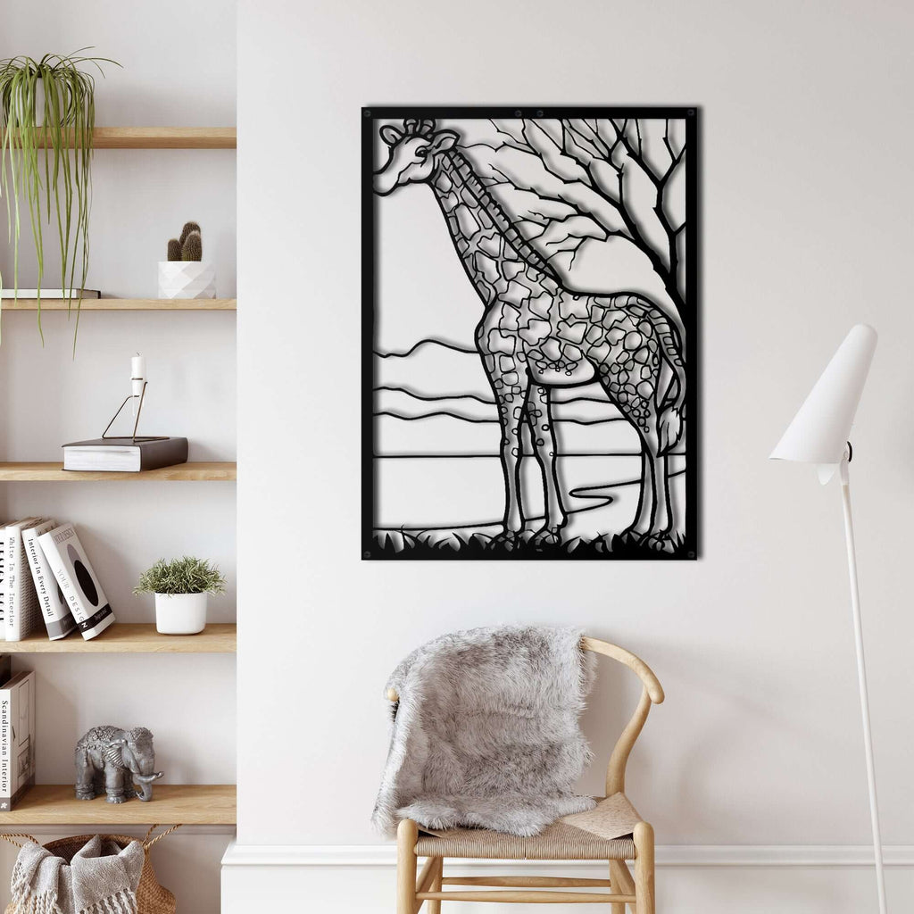 Bring the wild beauty of the savanna into your space with our stunning Giraffe Metal Wall Art. Perfect for nature lovers and safari enthusiasts, this unique piece captures the essence of wildlife with intricate detailing. Whether hung in your living room, bedroom, office, or nursery, it adds a touch of elegance and adventure to any room. Ideal as a gift for those who appreciate the majesty of wildlife, this decor is a captivating reminder of the giraffe's grace and beauty.