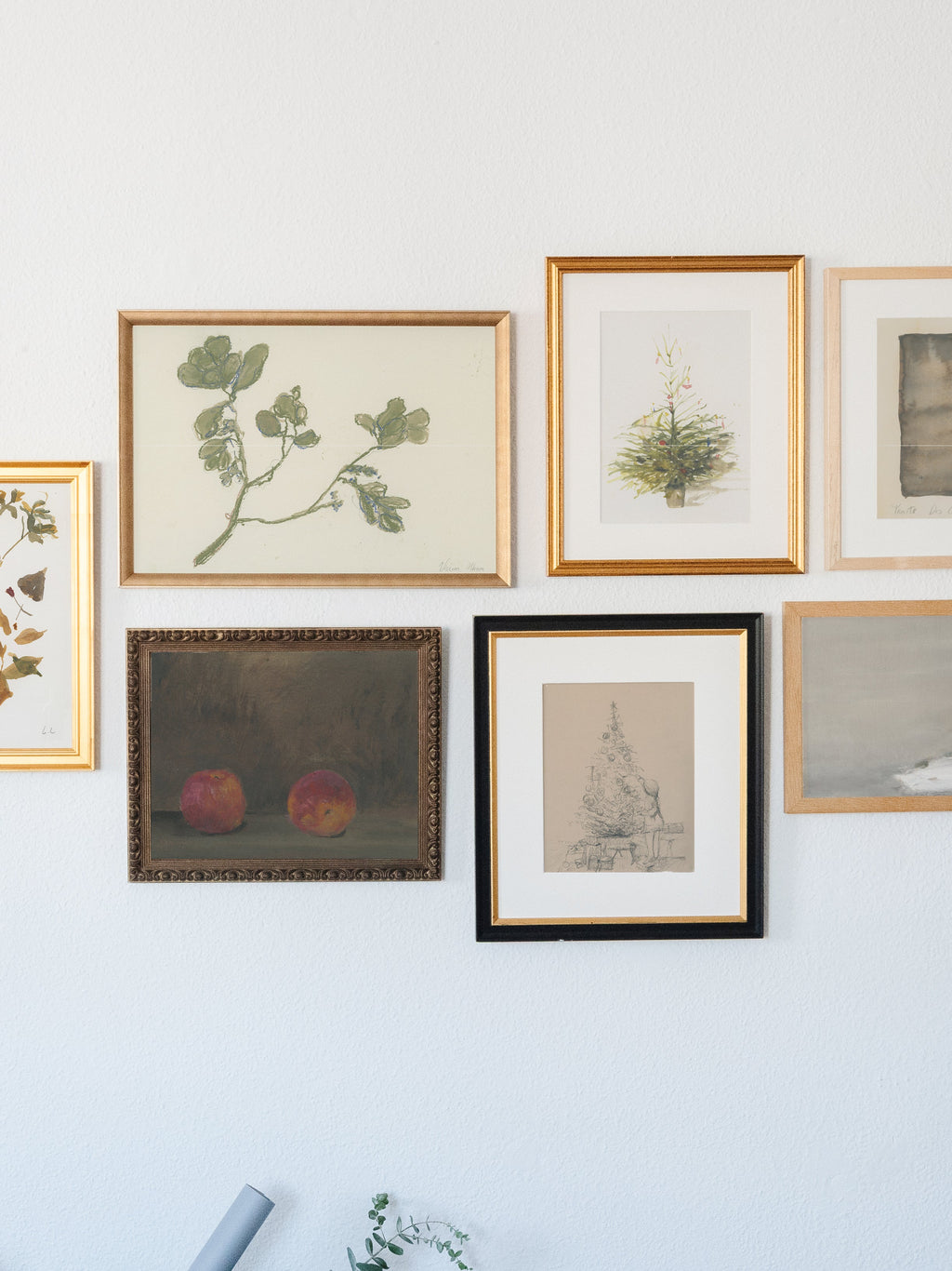 This charming cream and charcoal drawing conveys cozy holiday memories. It is a simple but remarkable addition to your holiday decor.