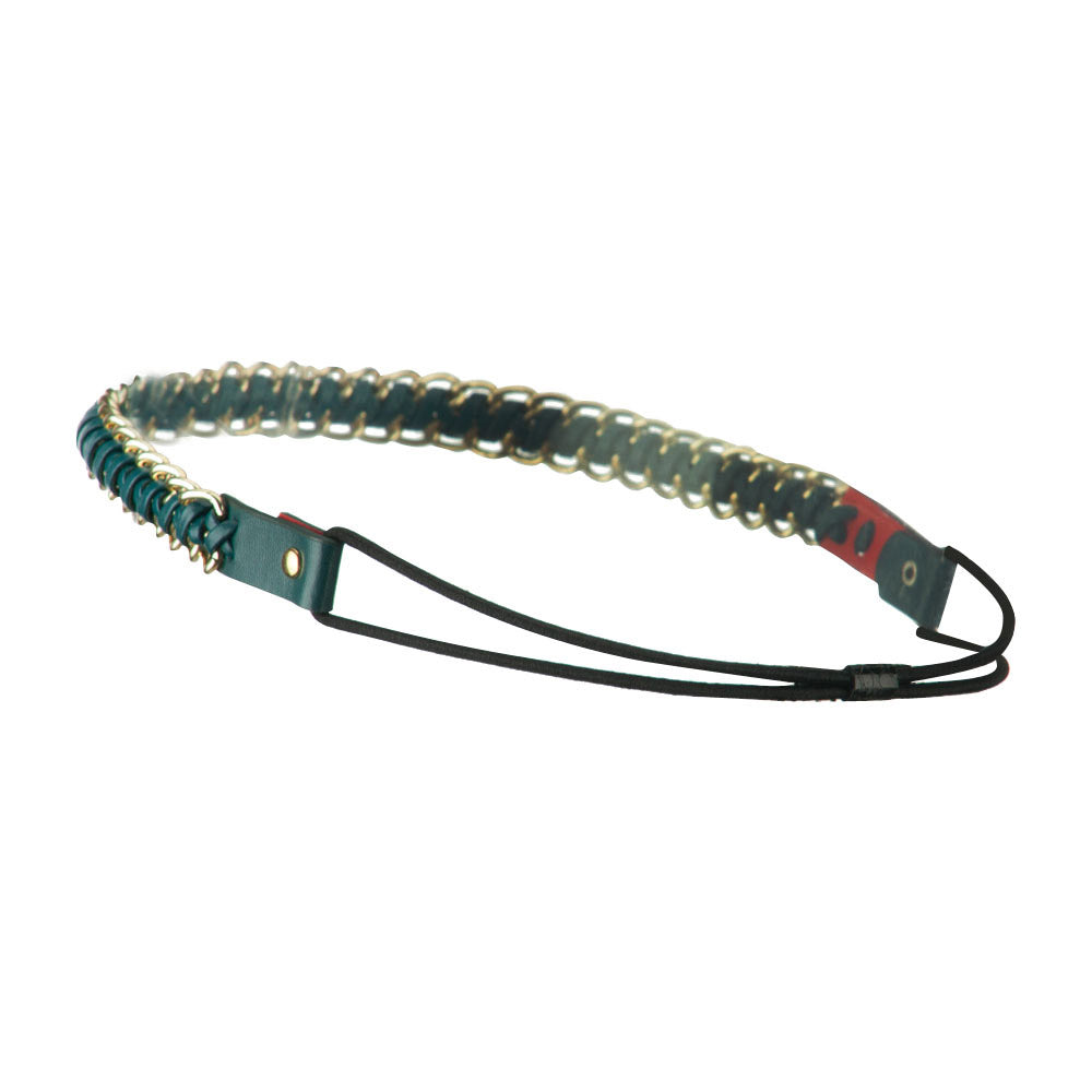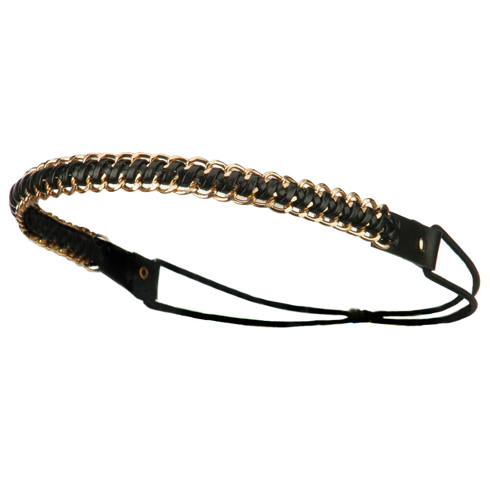 Design Feature, Elastic headband with unique braided gold chain decoration