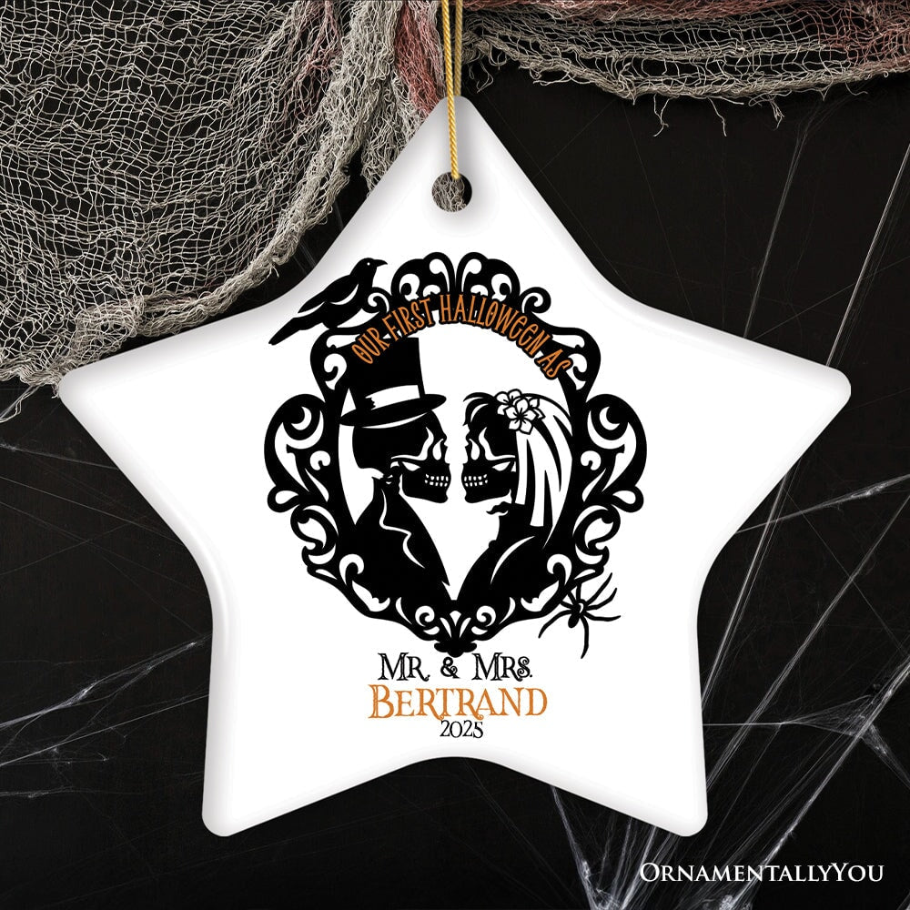Celebrate the spooktacular joy of your first Halloween as a married couple with our enchanting ornament! π»πβ¨ This delightful keepsake is a joyful nod to the special milestone you're sharing. With its whimsical design and festive flair, it captures the essence of love, laughter, and togetherness. Personalize it with your last name to make it even more special and cherished. Let's honor the start of a new tradition, the beginning of a hauntingly beautiful journey. This ornament is a small token of the magical memories you're creating together. Let's celebrate the newlyweds who embark on a lifetime of spooky delights, one Halloween at a time! πΈοΈπ¬β¨