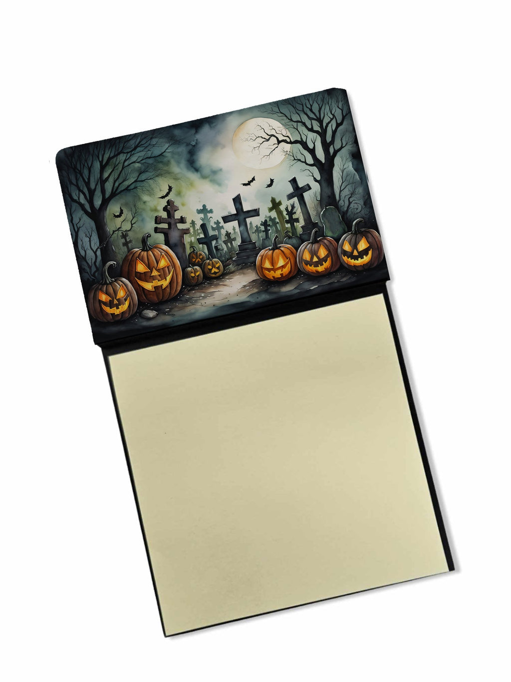 Shown here is the Graveyard Spooky Halloween Watercolor Sticky Note Holder from Caroline's Treasures featuring artwork of a Graveyard in a Halloween design. The detailed illustration and vibrant colors make it a standout accent for your home. Dive deeper into seasonal fun with our More Spooky Halloween Collection. Featuring extra festive and eerie-inspired designs perfect for the spooky season, this collection brings spirited personality and playful charm to seasonal décor and thoughtful Halloween gifts. Crafted for convenience and style, this refillable sticky note dispenser includes a 3 inches x 3 inches sticky note pad and features a smooth top board printed with original artwork. To refill, simply attach the last sheet of a new pad and a piece of tape — it’s that easy. Whether you’re leaving reminders, jotting quick notes, or gifting it to a friend, this decorative sticky note holder makes a thoughtful, practical, and eye-catching addition to desks, kitchen counters, or magnetic surfaces. Add a business-card size magnet to the back (sold separately) to transform it into a handy refrigerator memo station. it’s organization with personality. Perfect for: Offices, desks, and workspaces, everyday organization, Seasonal-themed décor, or year-round enjoyment for Graveyard enthusiasts. Makes a heartfelt gift for: Graveyard owners, Seasonal lovers, Halloween gifts, pet parents, friends who adore their Graveyard, or anyone celebrating Seasonal.