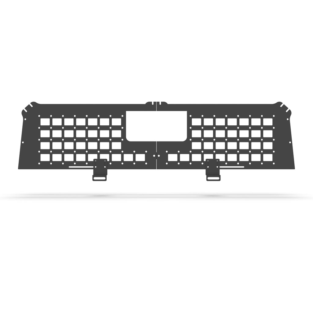 Our headache panel offers a MOLLE-like pattern with incorporated rotopax cutouts for you to mount some rotopax and other items. This is a great place to mount items you need quick access to at camp.