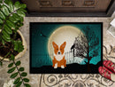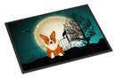 Decorate your space with our Halloween Corgi artwork on a Doormat. Welcome your guests in style with our Artwork Door Mat, designed to withstand almost any weather condition. This mat, measuring approximately 24 by 36 inches, is held together by durable black binding tape. Its top layer, composed of polyester felt, is dyed with the eye-catching image you see on the mat. A few layers below provide the mat with stability, while its rubber bottom is stamped to help prevent slipping and ensures safety. Our mat works wonderfully as both an indoor or outdoor door mat. For cleaning, simply hose it off with water or use a power washer - no need for any cleaner that produces suds. Avoid scrubbing with a brush, instead, opt for the vacuum on floor setting. Designed manufactured and printed in the USA, this mat is a perfect addition to your porch, outdoor kitchen, entryway, or any indoor space. Its unique design makes it a charming decorative rug that greets your guests and adds a stylish touch to your home decor.