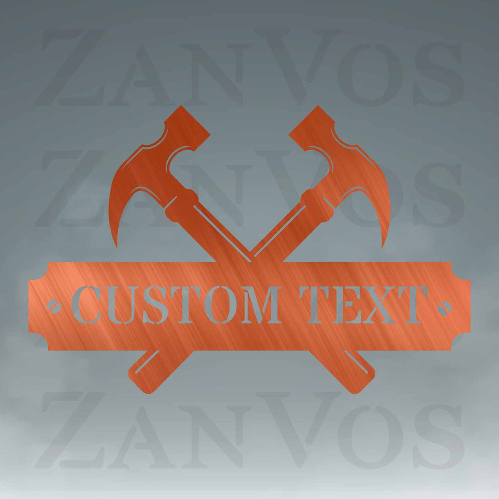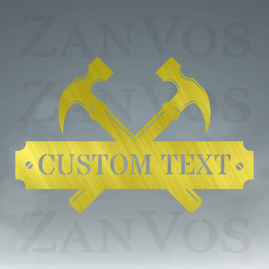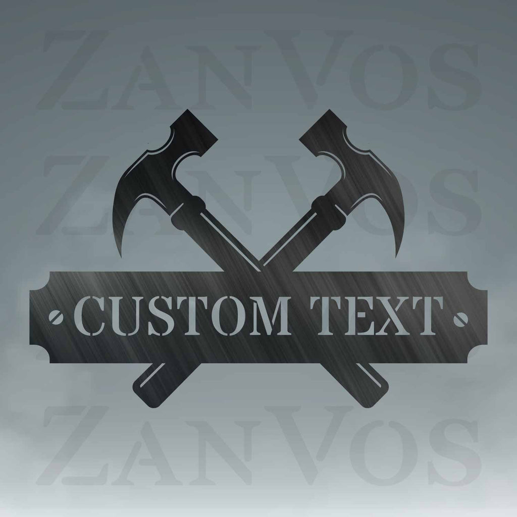 Add a personalized touch to your toolbox with our Hammer Monogram! Made from durable 16 gauge steel and powder coated for added strength, this monogram features two crossed hammers and can be customized with your own text. Perfect for any handyman or DIY enthusiast.