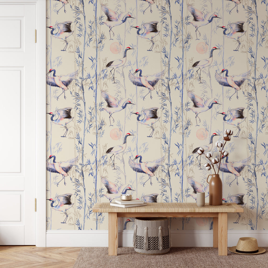 Transform your space with our Hand Drawn Watercolor Japanese Cranes Wallpaper. Hand drawn for a unique touch, this wallpaper features graceful Japanese cranes in watercolor. Instantly add an elegant and artistic feel to any room. Revamp your walls with ease and impress your guests.