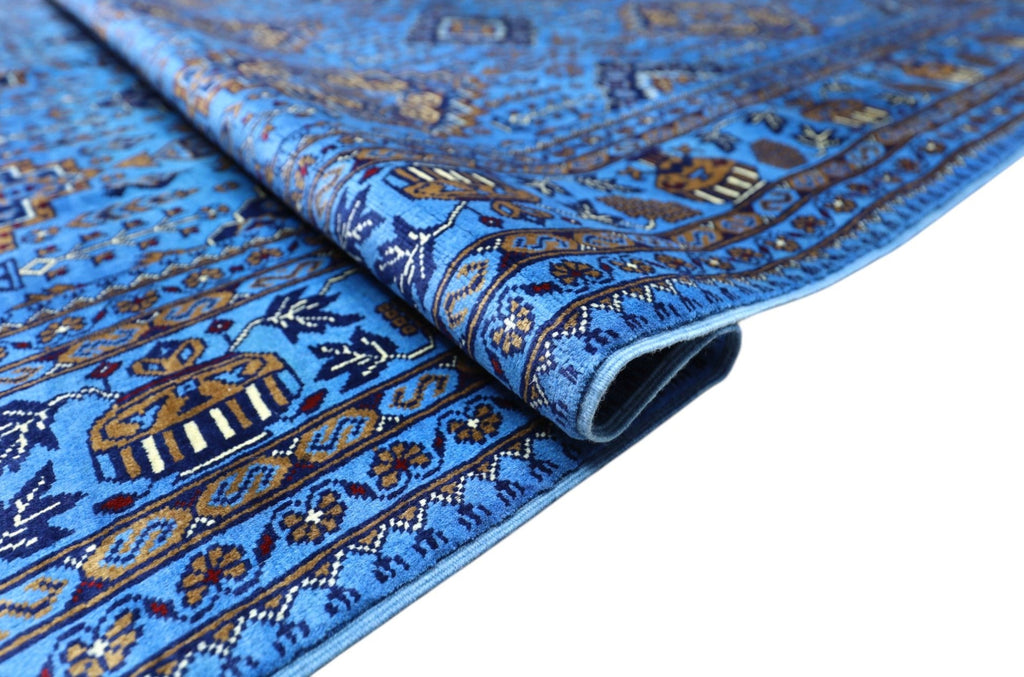 This hand-knotted zerkhaki rug features rich color tones and traditional Afghan weaving. Made with high-quality wool on a cotton foundation, it offers both beauty and durability. Ideal for adding character and texture to entryways, living rooms, or studies.