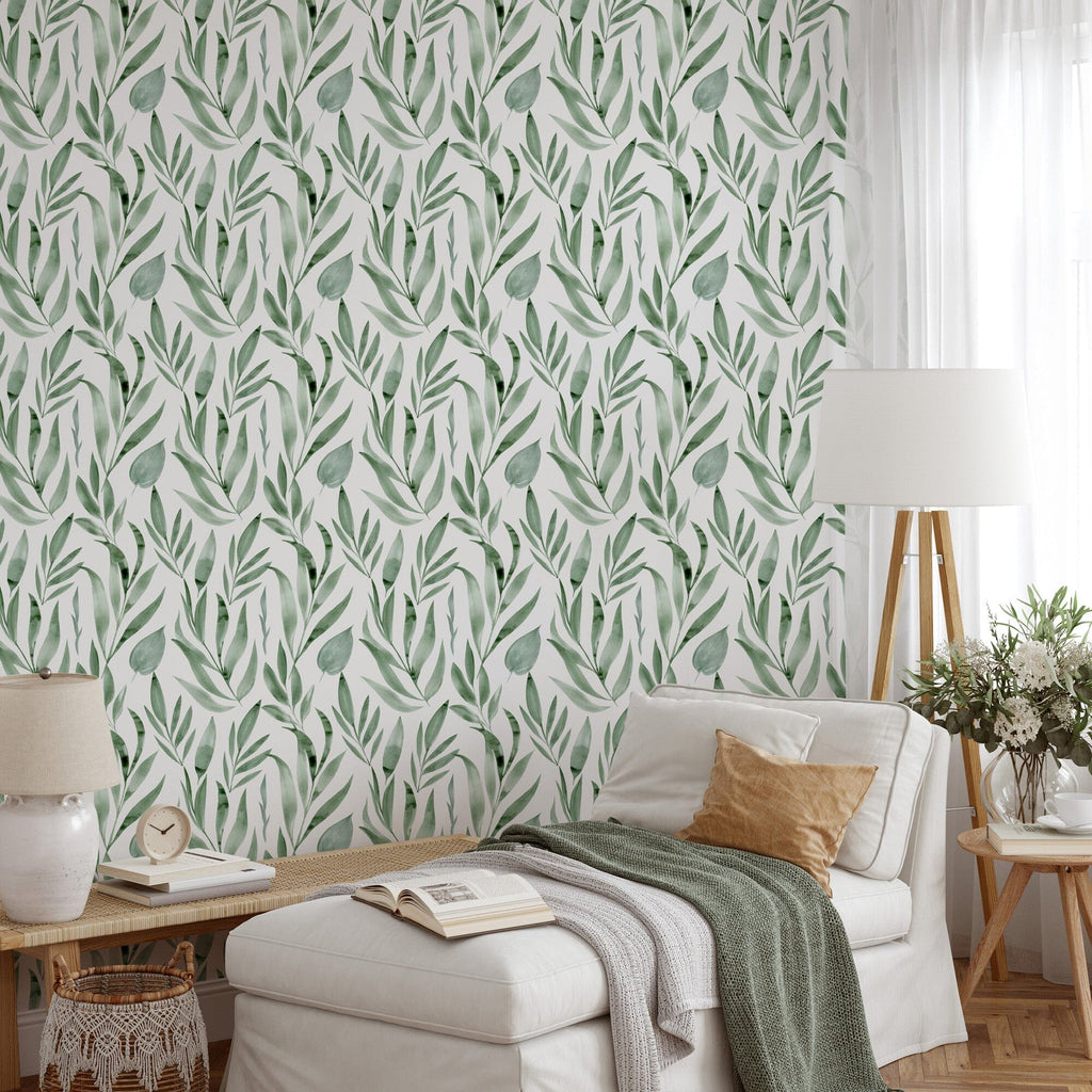 Make your walls come alive with the beauty of hand-painted botanical green leaves wallpaper. Transform your living space with a design that feels inviting and soothing to the eye, sure to bring a peaceful atmosphere to any room.