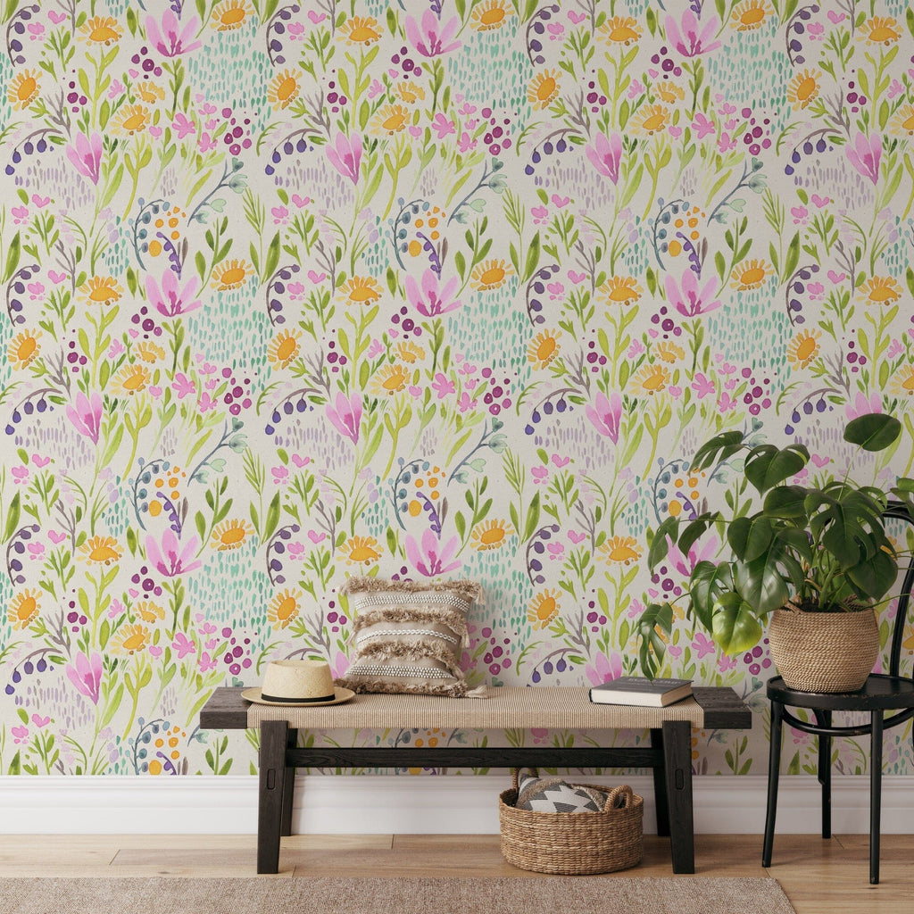 Create a vibrant atmosphere in your home with this colorful, hand painted wallpaper! Perfect for a girl's room decor, this wallpaper will bring a cheerful feel to any space. Bring joy into your home today!