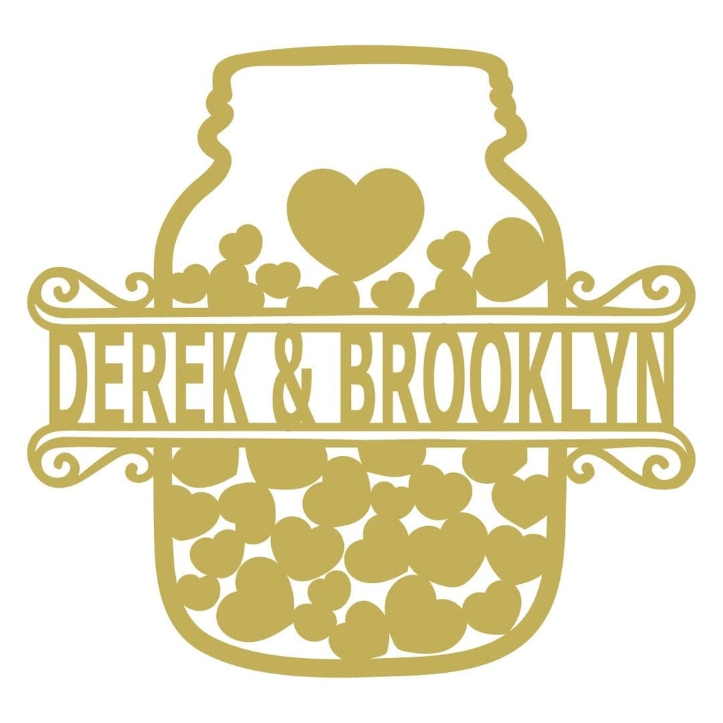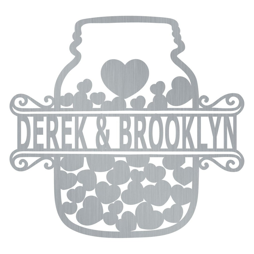 We carefully etch the sign to preserve the character of the Heart Jar Couple Monogram, as well as your name or message. Handcrafted in Minnesota, and personalized with your choice of text, our Heart Jar Couple Monogram is a stunning piece of custom art made to withstand years of outdoor or indoor use thanks to our weather-resistant baked-on powder coating."