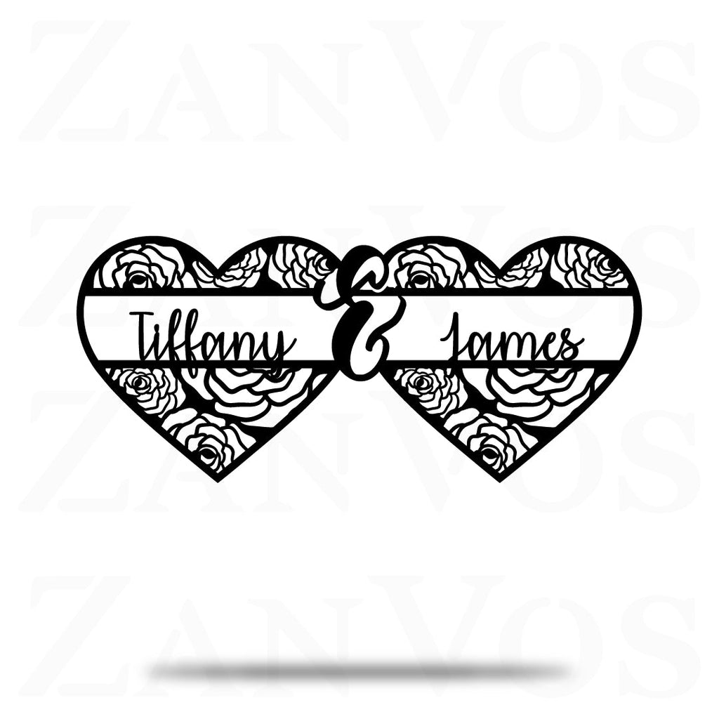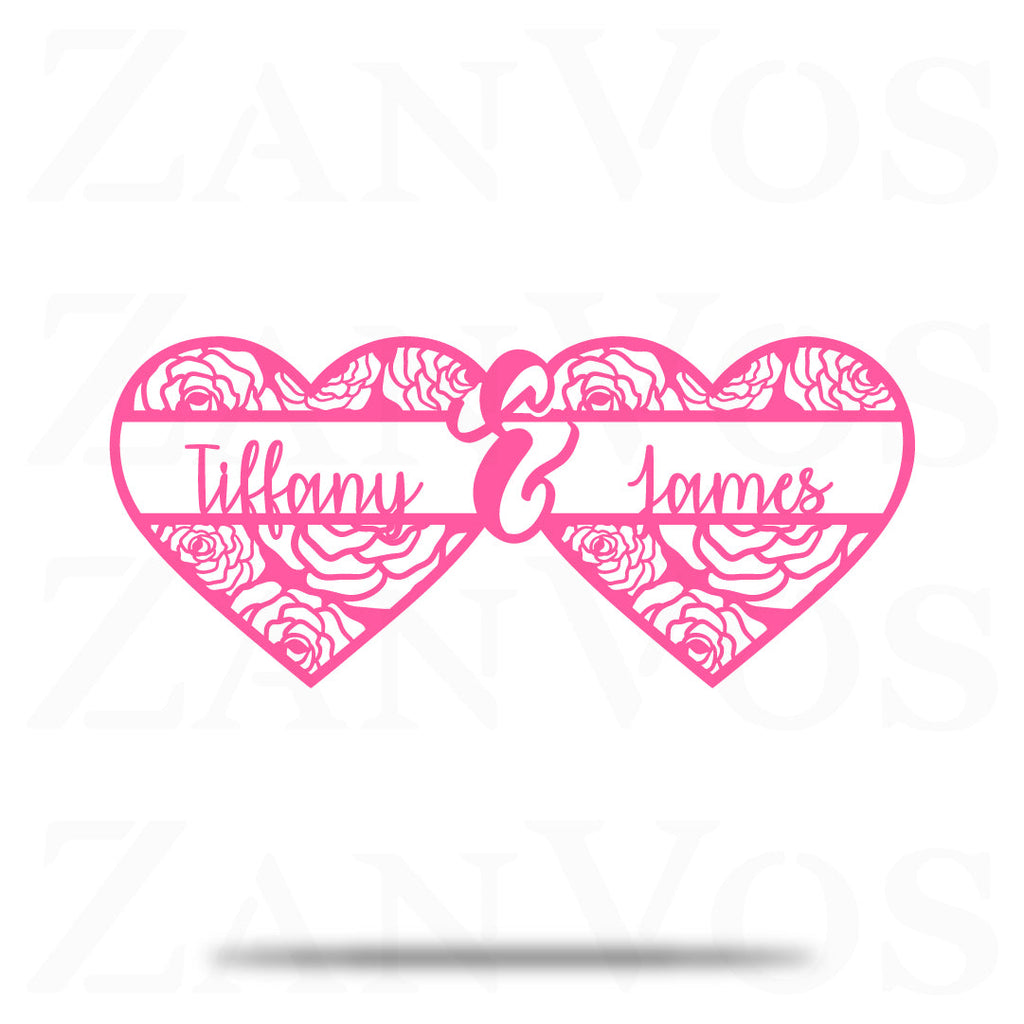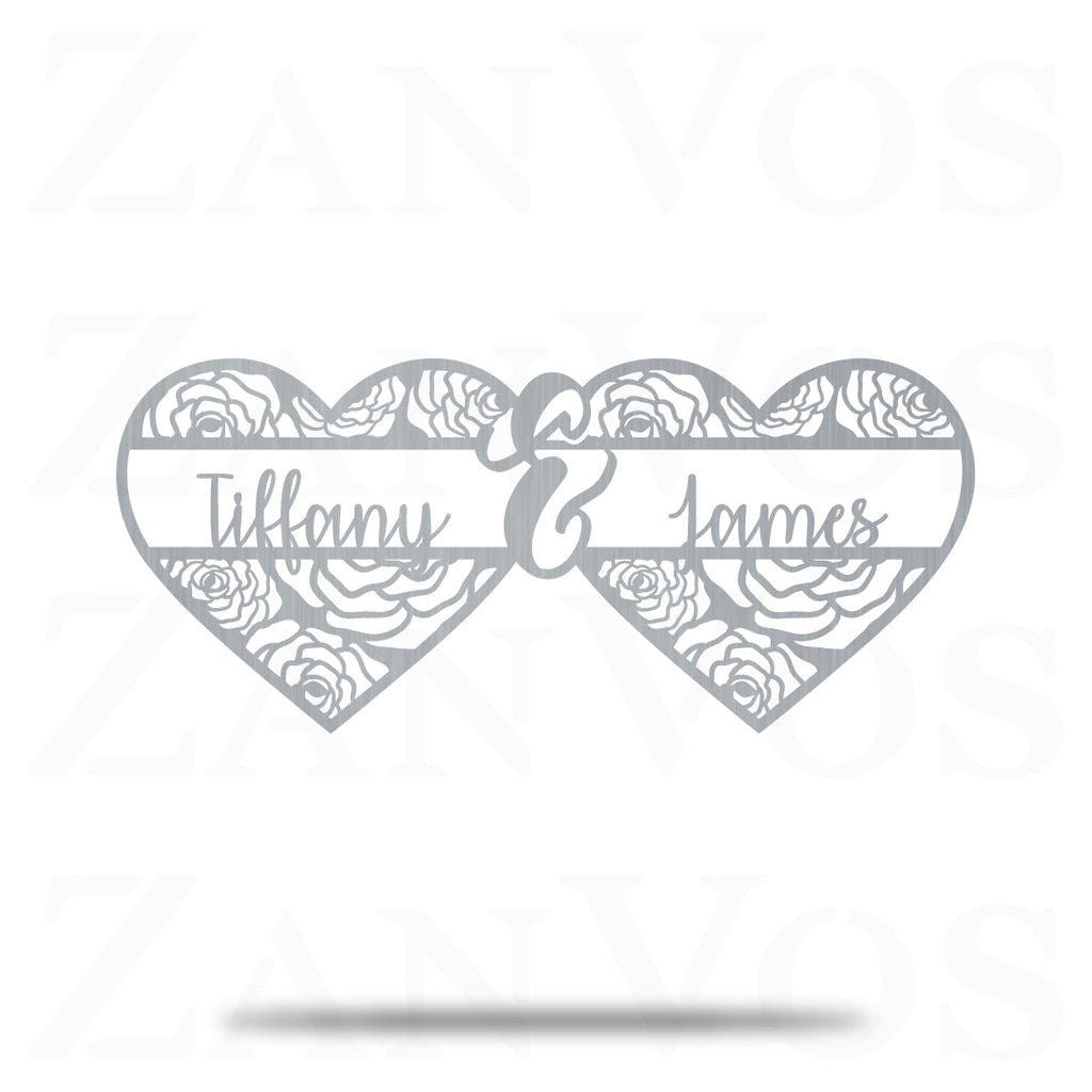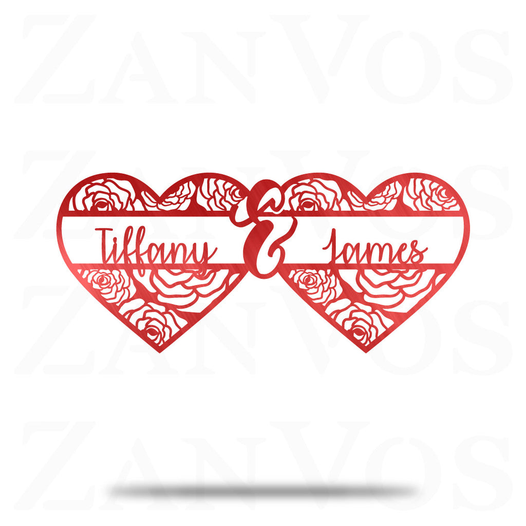 This beautiful Heart Rose Monogram is made of 16 gauge steel and features a powder coated finish for durability. The two hearts and intricate rose pattern add a touch of elegance. Personalize it with two custom names for a heartfelt and unique gift.