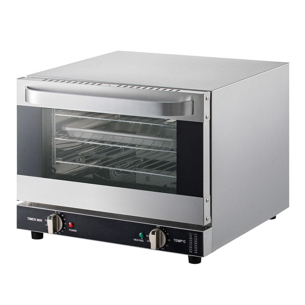 - Our powerful commercial countertop ovens, boasting 1440W/1600W/1800W of energy, circulate heat throughout the body for speedy baking. Two simple knobs allow you to adjust cooking temps (150-500℉ / 65-250℃) and time (0-120 min) for delicious, custom results -- an ideal, health-promoting alternative to deep-frying! Cultivate a healthier lifestyle with this oven!