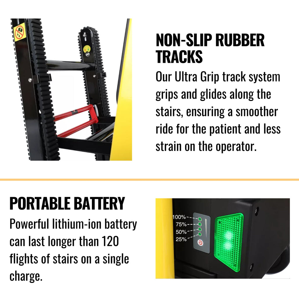 Included with the stairs motorized ems stair chair are rubber tracks that provide excellent traction with the stairs, making the movement effortless when climbing up or down. Plus, the electric stairs wheelchair also comes with a handy control panel that enables you to control its movement with ease.